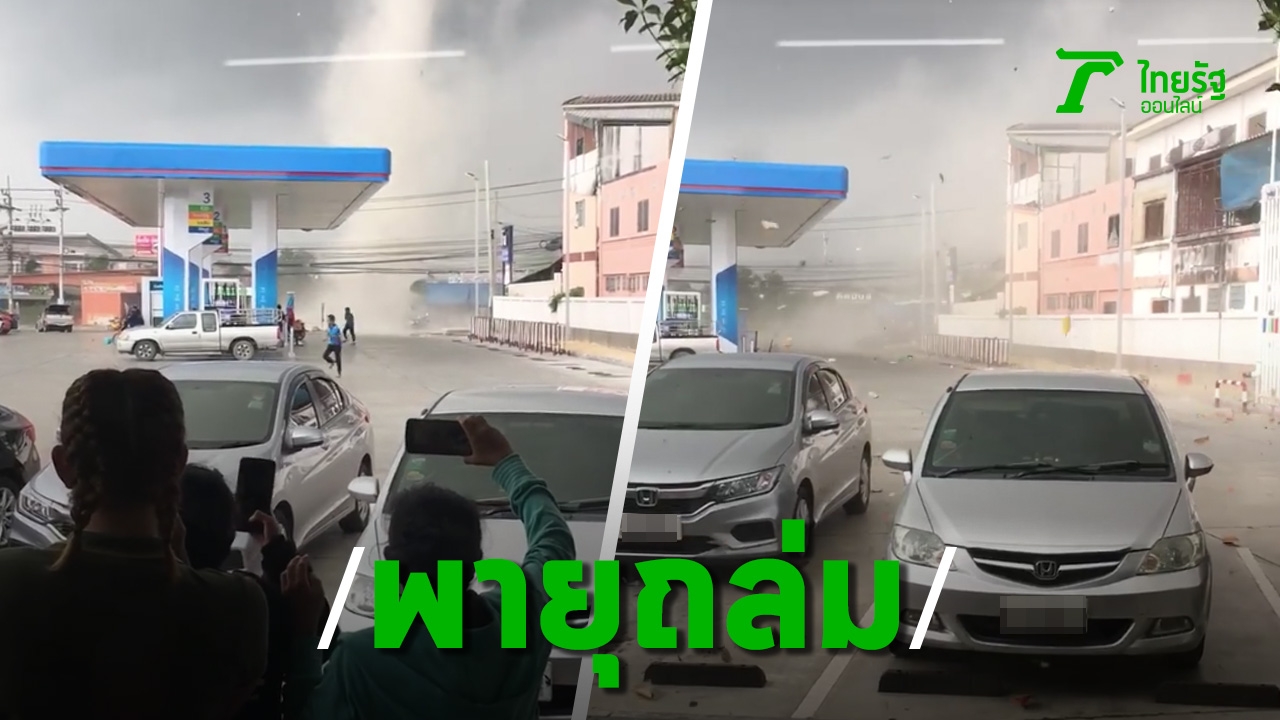 เปิดคลิปนาที "พายุหมุน" พัดถล่มกลางปั๊มน้ำมัน จ.สมุทรปราการ ชาวบ้านหนีกระเจิง ท่ามกลางท้องฟ้าที่เมฆดำทะมึน