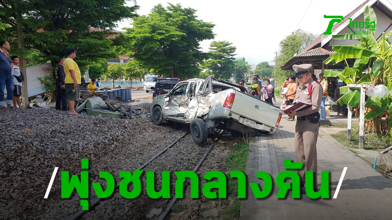 เกิดเหตุกระบะรับส่งคนงานก่อสร้าง ถูกรถไฟสายมหาชัย-วงเวียนใหญ่ ชนที่สมุทรสาคร จนพังไปทั้งแถบ โชคดีไม่มีใครได้รับบาดเจ็บ วงจรปิดจับภาพเหตุการณ์ได้ชัด
