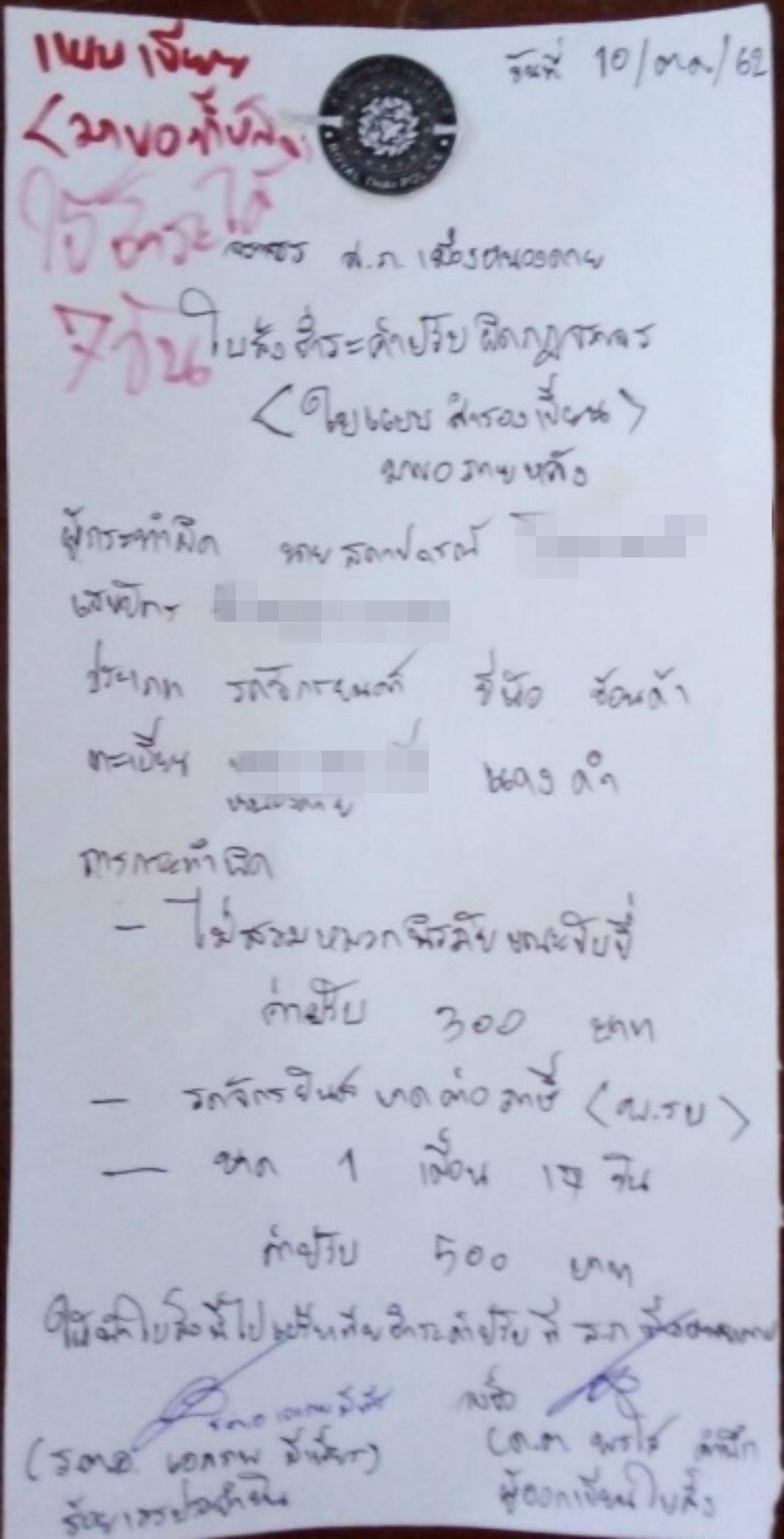 หนุ่มเคืองแฟนชอบบ่นไม่ใส่หมวกกันน็อก เลยปลอมใบสั่งตำรวจจราจรเมืองหนองคาย ส่งไลน์ให้แฟนสาวดู ขอเงินจ่ายปรับ 800 บาท สุดท้ายสารภาพโหลดแอปมาเขียนเอง เจอ 2 ข้อหา พ.ร.บ.คอมพ์ และปลอมเอกสารราชการ