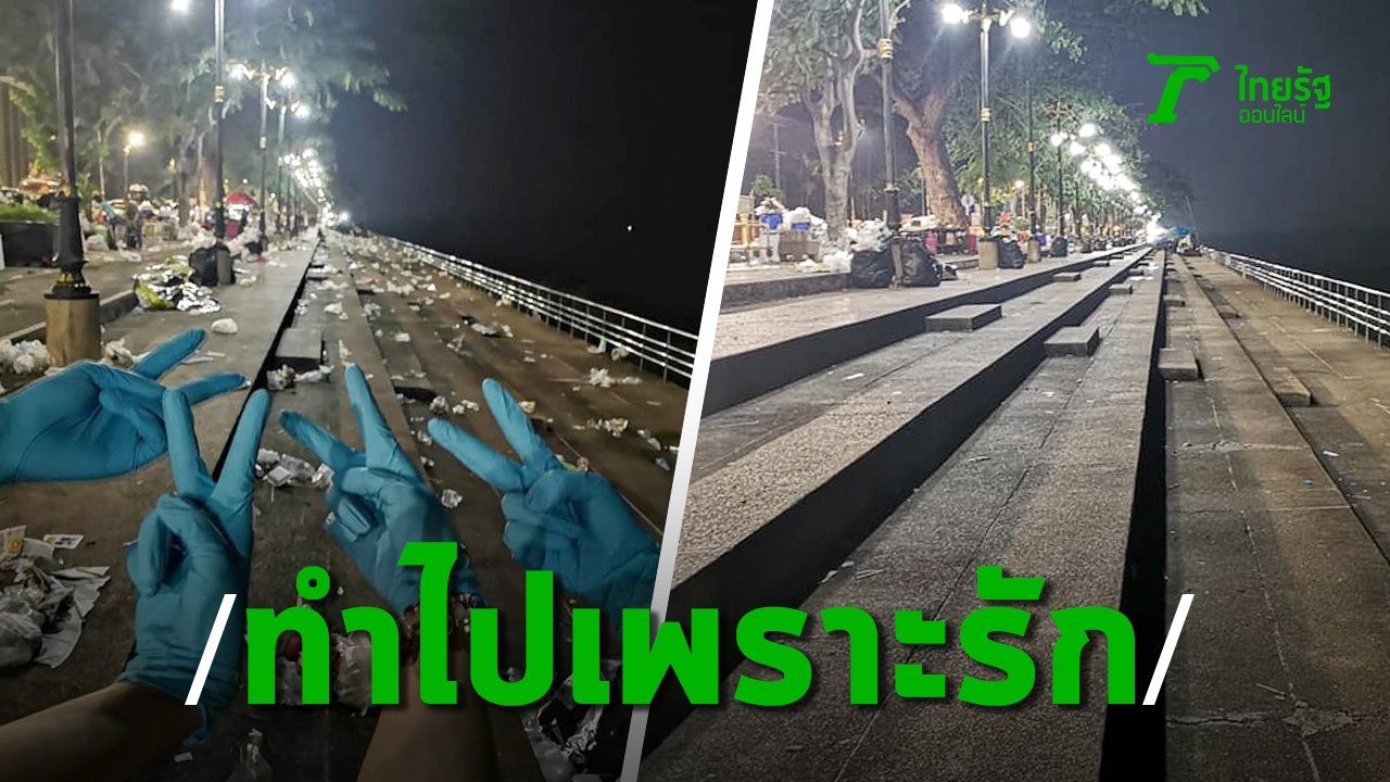 กระทั่งหลังงานไหลเรือไฟจบ ประชาชนนักท่องเที่ยวต่างทยอยเดินทางกลับ พบเห็นมีขยะถุงพลาสติกเกลื่อนไปหมด จึงพูดคุยกันว่า อยากช่วยเหลือสังคม บวกกับสงสารป้าและพนักงานเก็บขยะของเทศบาลเมืองนครพนม ที่ต้องทำงานหนัก จึงพากันอาสาจัดหาถุงดำมาช่วยกันเก็บขยะบริเวณพื้นที่อัฒจันทร์ริมน้ำโขง เยื้องๆ สภ.เมืองนครพนม โดยมีการนำภาพมาโพสต์ให้เพื่อนๆ ได้เห็น จะได้ช่วยกันรักษาความสะอาดให้เมืองนครพนมน่าอยู่
