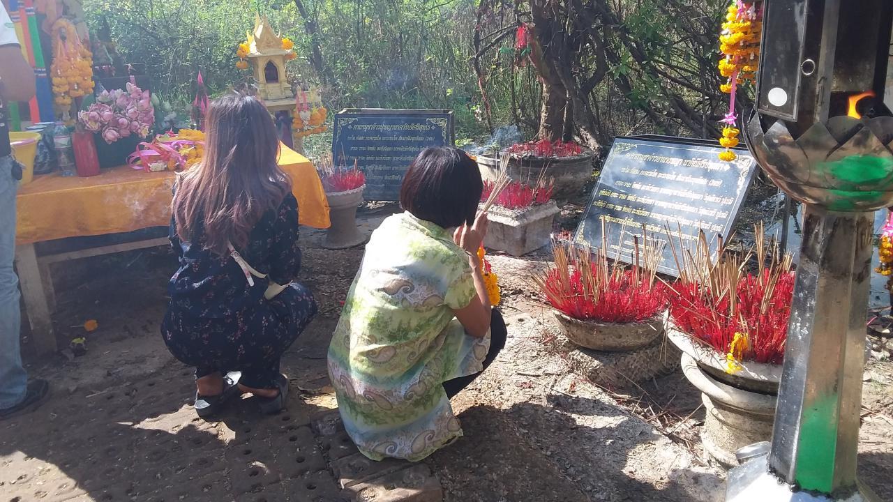 ขณะที่ ลานบวงสรวงยังมีการบวงสรวงแก้บน มีการทำขันน้ำมนต์พิธี ถือว่าขันสุดท้ายในรอบนี้ยังมีคนมาส่องน้ำตาเทียนเป็นรูปคล้ายพญานาค เท่ากับเลข 8 มีเพียง 1 ตัว บางคนบอกว่า 81 ตามความเชื่อของคนชอบเสี่ยง