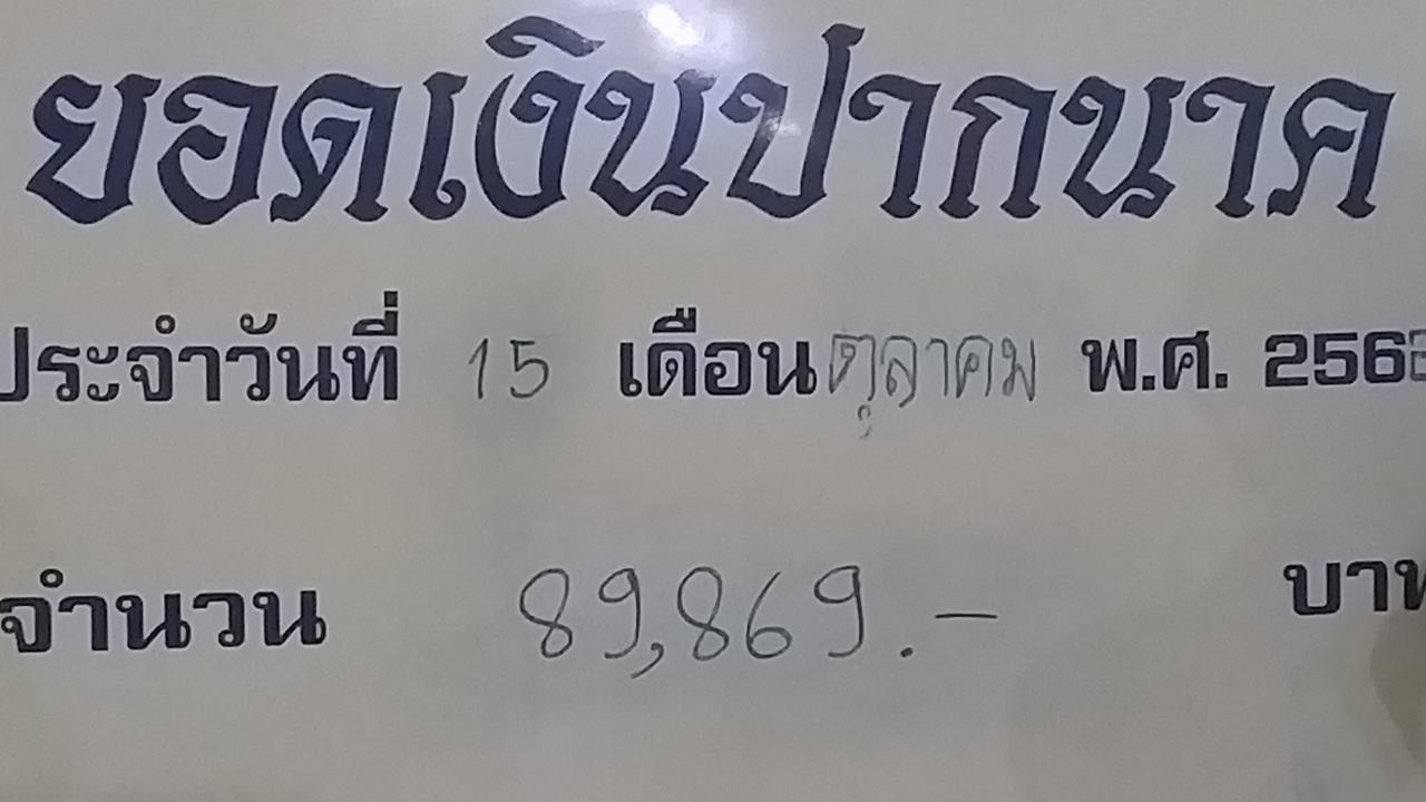 ส่วนเลขที่หลายคนรอคอย คือ ยอดบริจาคเงินปากนาคที่คณะกรรมการคำชะโนดจะนับทุกวัน และสาธุชนคนรักหวยมักจะเอาไปซื้อ โดยกรรมการเขียนกระดานแจ้งยอดเงินปากนาคประจำวันที่ 15 ต.ค. 62 รวมได้เป็นเงิน 89,869 บาท