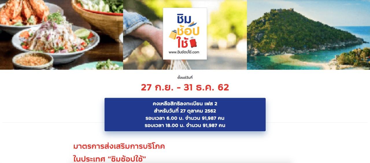 วันที่ 27 ต.ค.62 ผู้สื่อข่าวรายงานว่า หลังจากรัฐบาลเปิดให้ประชาชนลงทะเบียน ชิมช้อปใช้เฟส 2 เพื่อรับสิทธิ์ 1,000 บาท ไปใช้ท่องเที่ยวที่ใดก็ได้ในประเทศไทย ยกเว้นในจังหวัดตามบัตรประชาชน ตั้งแต่วันที่ 24 ต.ค.62 เป็นวันแรก โดยเปิดให้ลงทะเบียนวันละ 2 รอบ คือช่วงเช้า เวลา 06.00 น. และ ช่วงเย็น เวลา 18.00 น. จำนวนรอบละ 5 แสนคน