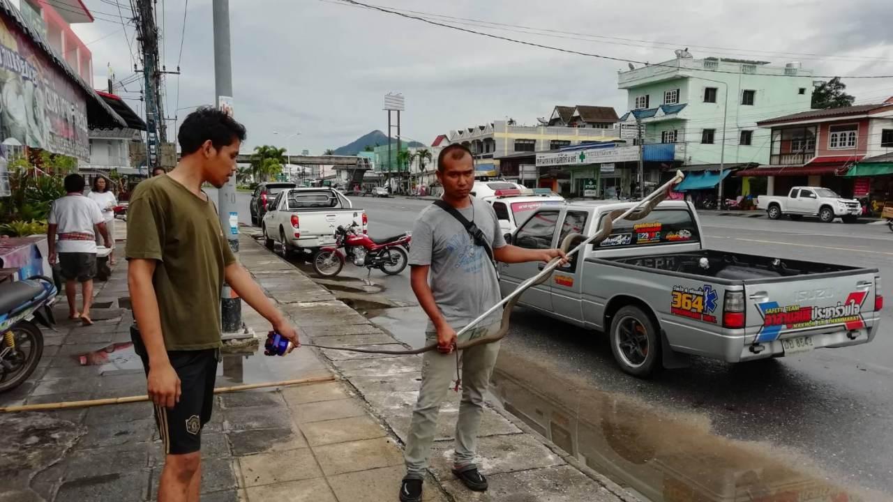 เมื่อเวลา 15.30 น. วันที่ 27 ต.ค.62 ศูนย์วิทยุอาสาสมัครมูลนิธิประชาร่วมใจ อ.พรหมคีรี จ.นครศรีธรรมราช รับแจ้งขอความช่วยเหลือจาก นางวรรณิดา หรือ ป้าแดง นิลอาสน์ อายุ 65 ปี เจ้าของร้าน ป้าแดงนุ้ย ติ่มซำ เลขที่ 212 หมู่ 1 บ้านนอกท่า ต.พรหมโลก ว่ามีงูจงอาง บุกเข้ามาในบ้าน