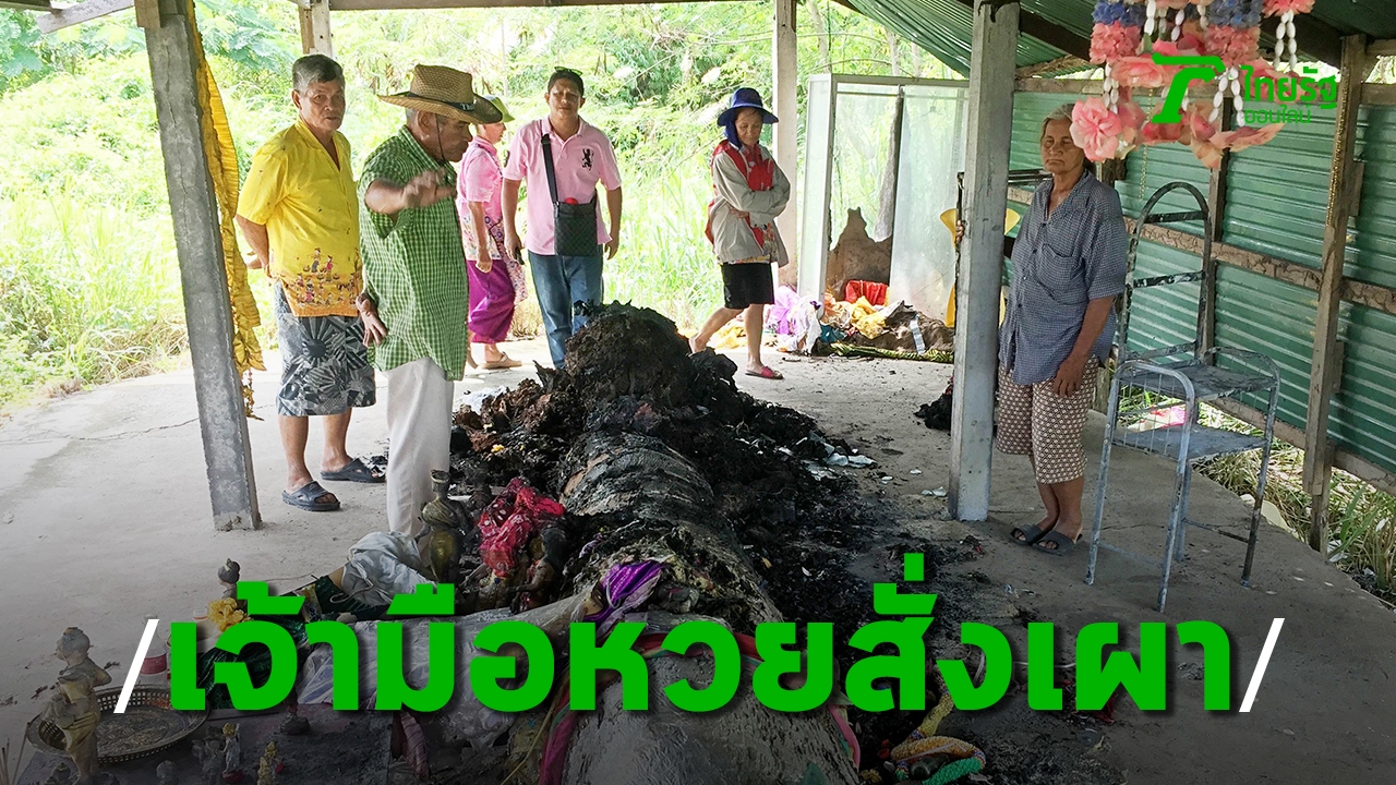 ชาวพนัสนิคม ทำพิธีสาปแช่งมือดีเผา "ศาลเจ้าแม่คุ้งตะเคียนทอง" คาดเจ้ามือหวยสั่งมา หลังให้ "เลขเด็ด" แม่นหลายงวด