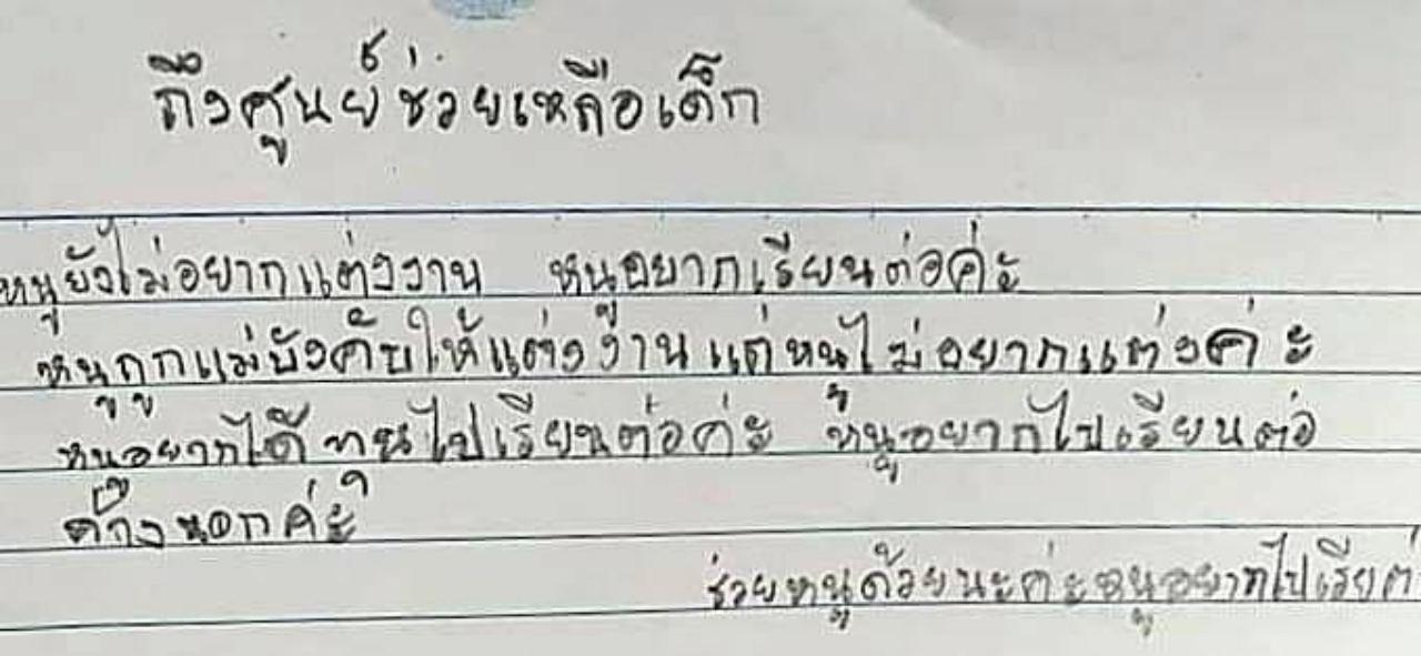 ปัญหานี้ไม่เคยหายไปจากสังคมไทย "ศูนย์เพื่อน้องหญิง" เปิดเผยจดหมายลับของ "น้องหนูนา" เด็กหญิงวัย 12 เกือบถูกพ่อแม่ขายให้ไปแต่งงานกับชายวัย 50