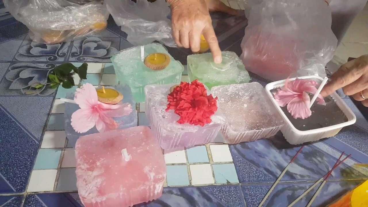 แม่อุ้ย เลยเอาน้ำเปล่า มา เทใส่ภาชนะที่มีรูปร่างต่างๆ ทั้งกลมทั้งเหลี่ยมและได้แต่งเติมสีต่างๆ ผสมในน้ำ แล้วนำไปแช่แข็งใน ช่องแช่แข็ง ตู้เย็น เมื่อแข็งตัวแล้วนำออกมา บรรจุห่อด้วยพลาสติก นำเก็บไว้ใส่ กระติกน้ำแข็ง ในตู้เย็น เพื่อให้ลูกหลาน นำไปลอยกระทงในวันลอยกระทงที่จะถึงนี้