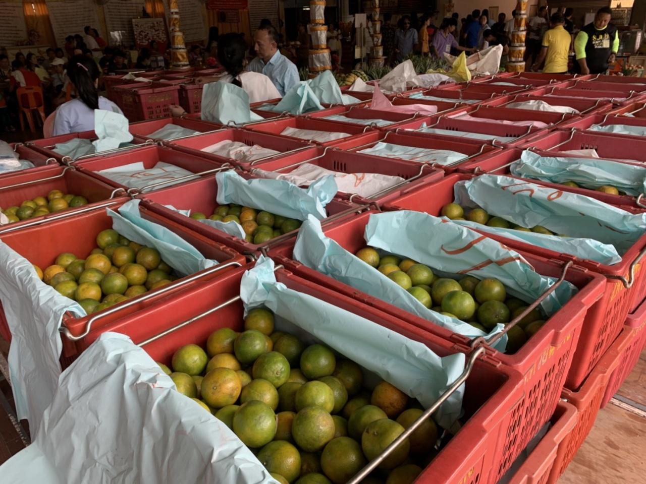 ด้าน พระครูศรีสุตากร เจ้าอาวาส เผยว่า หลังจากประกอบพิธีเสร็จ ได้ให้จิตอาสาหลวงพ่อสมหวังนำส้มเขียวหวานบางส่วนมอบให้กับโรงเรียนโสตศึกษา นครชัยศรี บ้านพักคนชรา วัดสำโรง โรงพยาบาลหลวงพ่อเปิ่น โรงพยาบาลห้วยพลู และโรงเรียนในเขตพื้นที่ อ.นครชัยศรี และอีกส่วนหนึ่งจะนำมาแจกให้กับสาธุชนที่มากราบไหว้หลวงพ่อสมหวัง และเข้าพิธีสวดนพเคราะห์เนื่องในเทศกาลลอยกระทง เพื่อเพิ่มบุญให้กับผู้ถวายแก้บนอีกต่อหนึ่งด้วย.