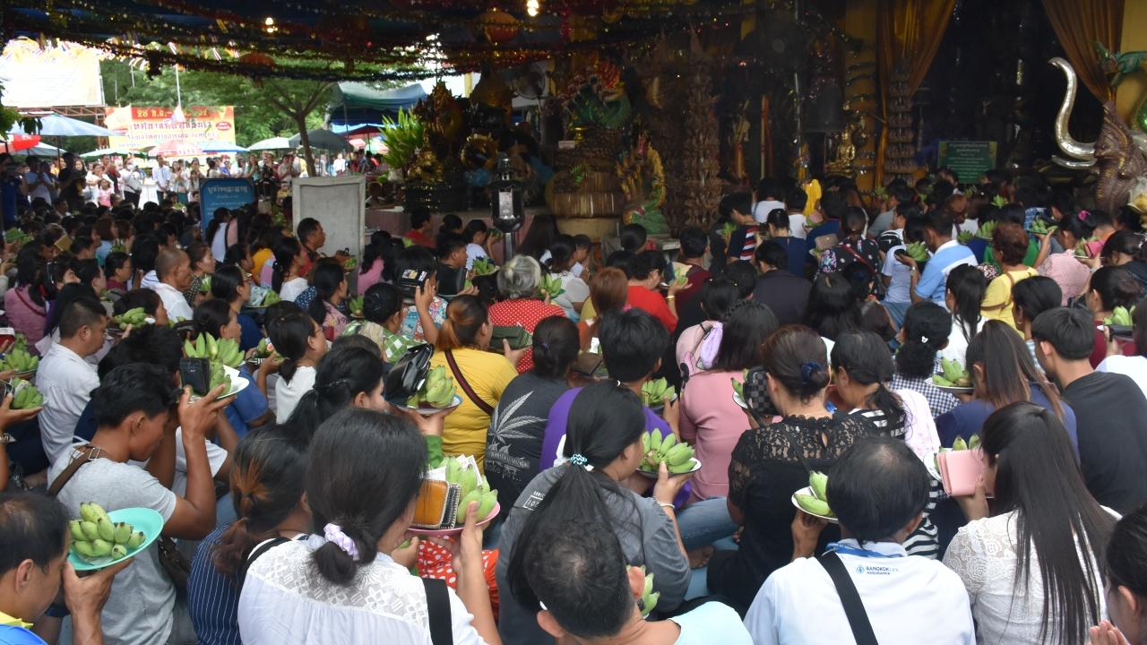 วันที่ 13 พ.ย.62 ผู้สื่อข่าวรายงานว่า บรรยากาศช่วงใกล้วันหวยออก ที่วัดสว่างอารมณ์ แคแถว ต.ขุนแก้ว อ.นครชัยศรี จ.นครปฐม คึกคักไปด้วยสาธุชนและบรรดานักเสี่ยงโชคที่มากราบไหว้ขอพรและมาขอเลขเด็ด ต่างนำเครื่องเซ่นไหว้บวงสรวง ไม่ว่าจะเป็น กล้วย มะพร้าวน้ำหอม ไข่ไก่ มาถวายสิ่งศักสิทธิ์ตามความเชื่อกันอย่างเนืองแน่น อาทิ รูปปั้นหลวงปู่ศรีสุทโธ และแม่ย่าปทุมมา พญานาคราช