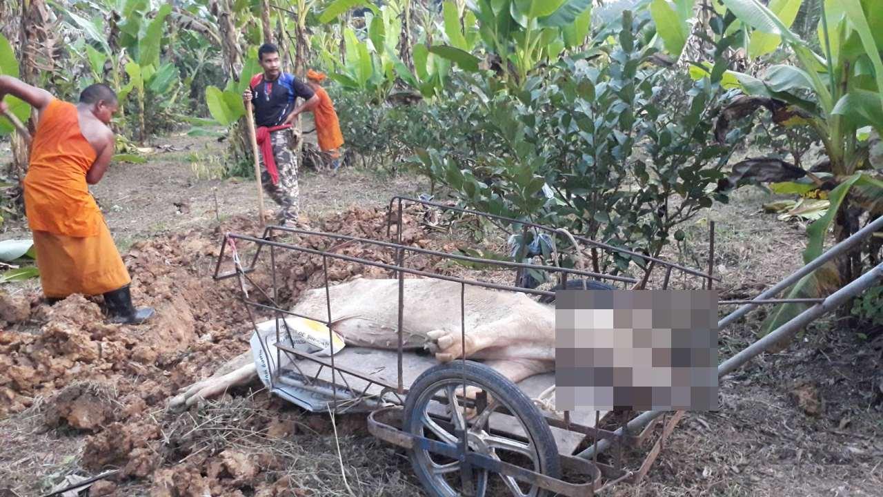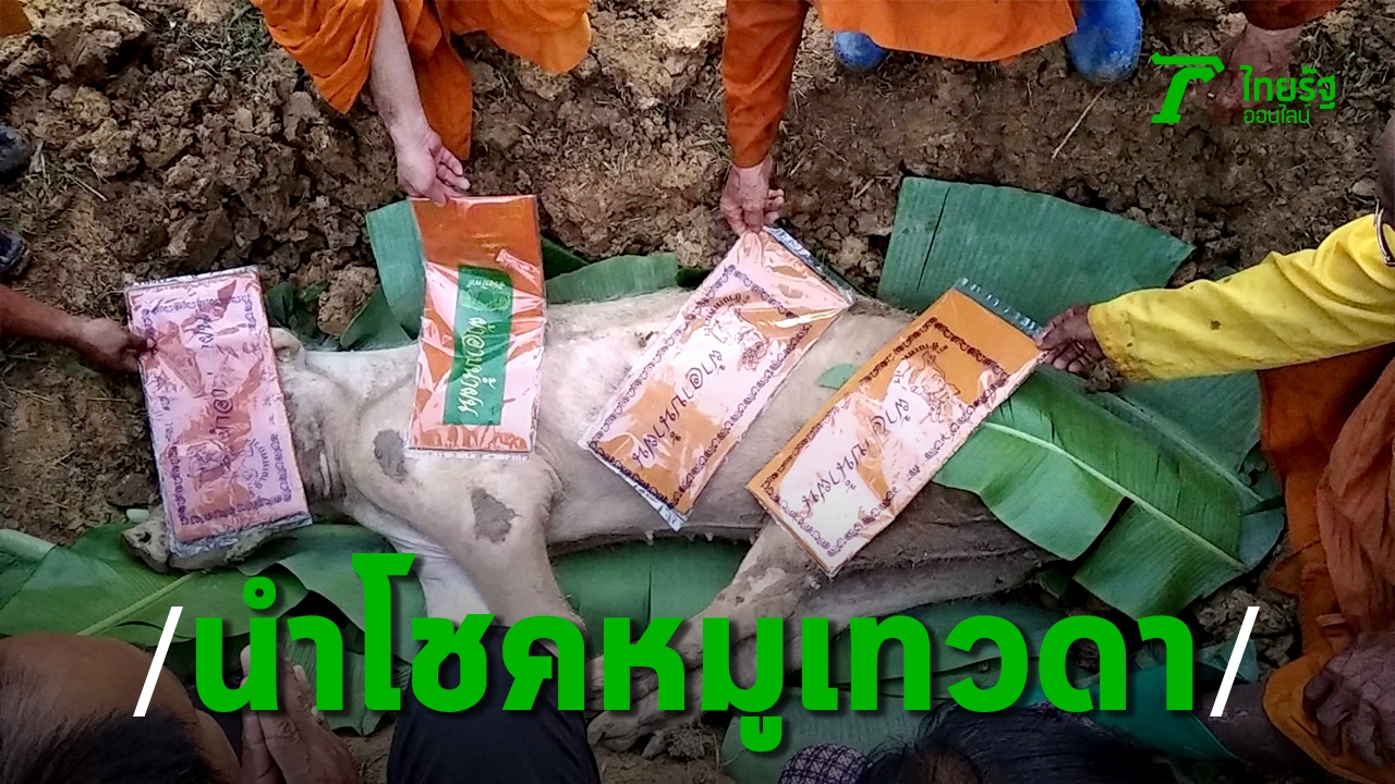 คอหวยแห่ตีเลขเด็ด "เจ้านำโชค" หมูเทพ หรือ หมูเทวดา วัดเขาพระทองที่อ.ชะอวด หลังมี 20 กีบไม่เหมือนหมูทั่วไป เกิดล้มตาย เจ้าอาวาสวัดบำเพ็ญกุศลเหมือนศพคนก่อนฝังในสวน