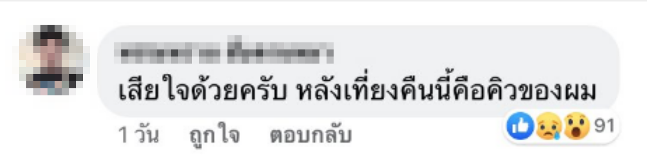 โดยหลังที่มีการนำเสนอข่าวผ่านโลกโซเชียล พบว่า มีผู้ใช้เฟซบุ๊กรายหนึ่ง เข้ามาแสดงความอาลัย พร้อมต่อด้วยข้อความน่าตกใจว่า "เสียใจด้วยครับ หลังเที่ยงคืนนี้คือคิวของผม"