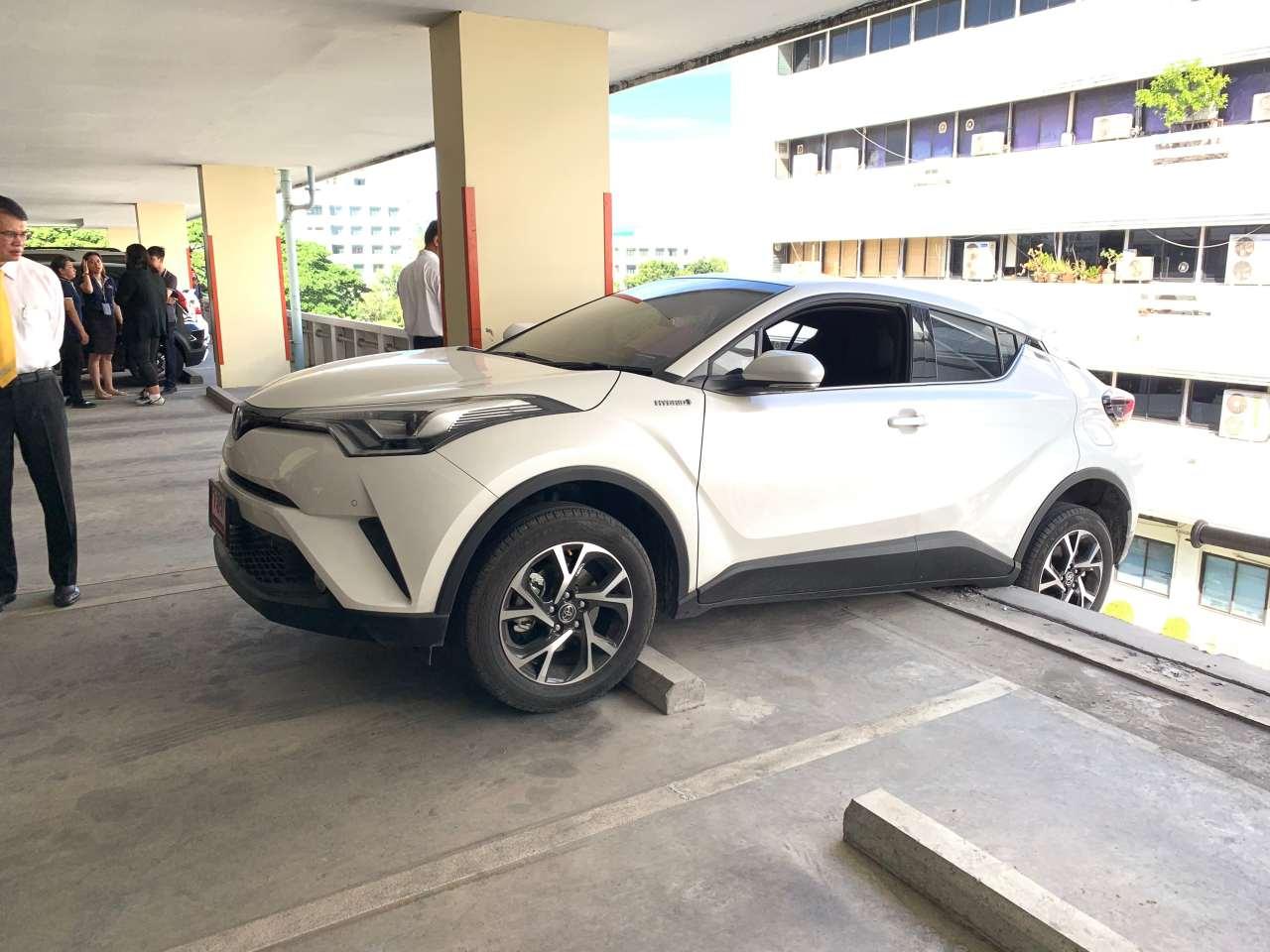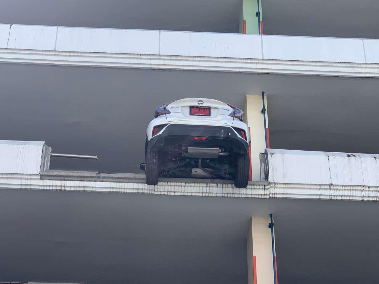 ทั้งนี้ ที่เกิดเหตุเป็นอาคารจอดรถ 6 ชั้น ชั้น 4 เอ พบรถเก๋งโตโยต้า รุ่นซีเอชอาร์ สีขาว ทะเบียนป้ายแดง ร 3797 กรุงเทพมหานคร ตัวรถยื่นออกมานอกอาคารครึ่งคัน ตัวรถด้านคนขับพังเสียหาย ขอบกำแพงปูนตกลงมากองด้านล่าง