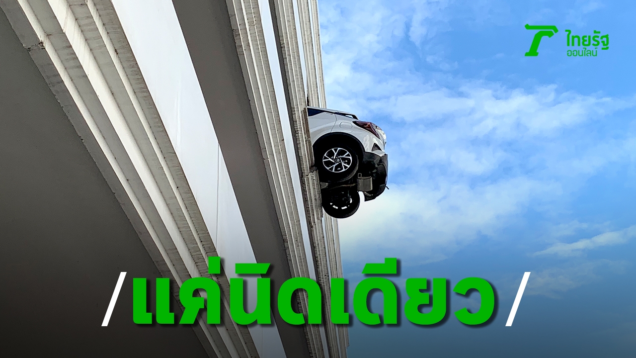 ระทึกทั้งกระทรวงสาธารณสุข สาวขับเก๋งป้ายแดงถอยชนขอบปูน เพียงนิดเดียวเกือบตกตึก