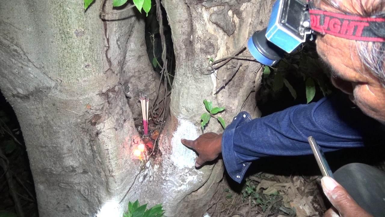 ขณะที่เดินส่องมาถึงใต้ต้นมะเดื่อใหญ่ ตนรู้สึกผิดปกติ เมื่ออยู่ดีๆ ต้นมะเดื่อก็เกิดสั่นไหว และพุ่งไม้สั่นไปมา ตอนแรกคิดว่าลมพัด จึงใช้ไฟส่องขึ้นไปดู ก็ยิ่งแปลกใจอย่างมาก เมื่อสิ่งที่เห็นบนยอดต้นมะเดื่อ คล้ายกับถูกจับเขย่าอย่างรุนแรง โยกไปมาตลอดเวลา ทั้งๆ ที่ข้างกันไม่มีลมพัดเลยสักนิด