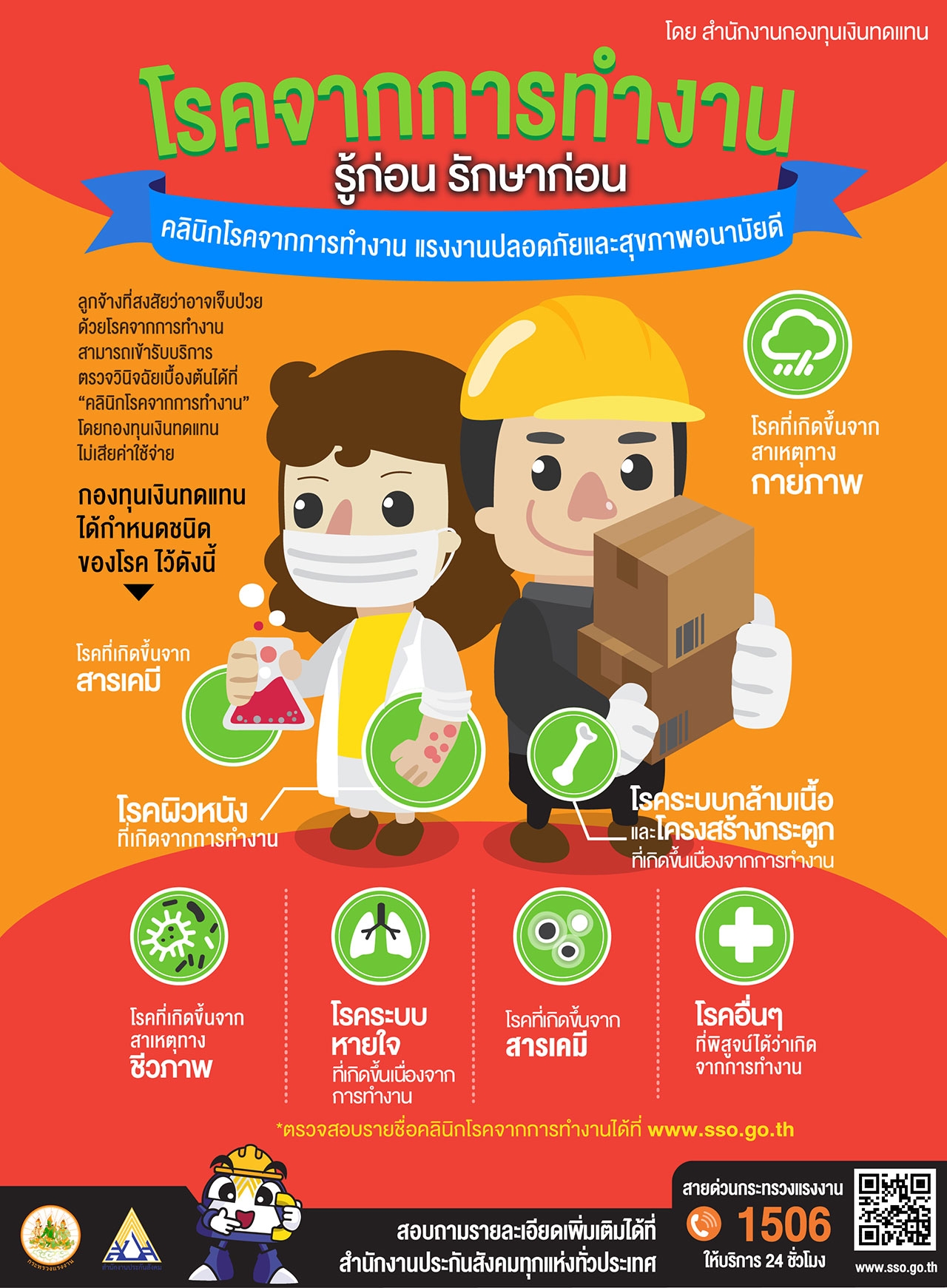 ลูกจ้างที่สงสัยว่าอาจเจ็บป่วยด้วยโรคจากการทำงาน สามารถเข้ารับบริการตรวจวินิจฉัยเบื้องต้นได้ที่ “คลินิกโรคจากการทำงาน” โดยกองทุนเงินทดแทน ไม่เสียค่าใช้จ่าย