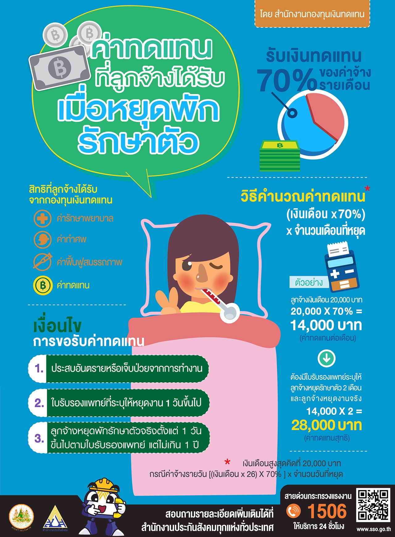 ในชีวิตการทำงานเป็นเรื่องปกติที่ทุกคนจะมีโอกาสเจ็บป่วย หรือเกิดอุบัติเหตุ จนจำเป็นต้องหยุดงาน ด้วยเหตุนี้รัฐบาลจึงตั้งกองทุนเงินทดแทนขึ้นมา เพื่อช่วยเหลือลูกจ้างในเรื่องต่างๆ และล่าสุดได้มีการประกาศ พ.ร.บ.เงินทดแทน (ฉบับที่ 2) พ.ศ. 2561 ซึ่งทำการปรับปรุงความคุ้มครองให้ดีขึ้น (ลูกจ้างรัฐ-เอกชนเฮ! ได้เงินทดแทนเพิ่มเป็น 70% ตั้งแต่วันแรกที่หยุดงาน) ซึ่งได้มีการปรับปรุงค่ารักษาพยาบาลและขยายความคุ้มครองให้ลูกจ้าง เพื่อลดความเหลื่อมล้ำทางสังคม ให้ลูกจ้างได้รับสิทธิประโยชน์เพิ่มขึ้น และนายจ้างได้รับความเป็นธรรม