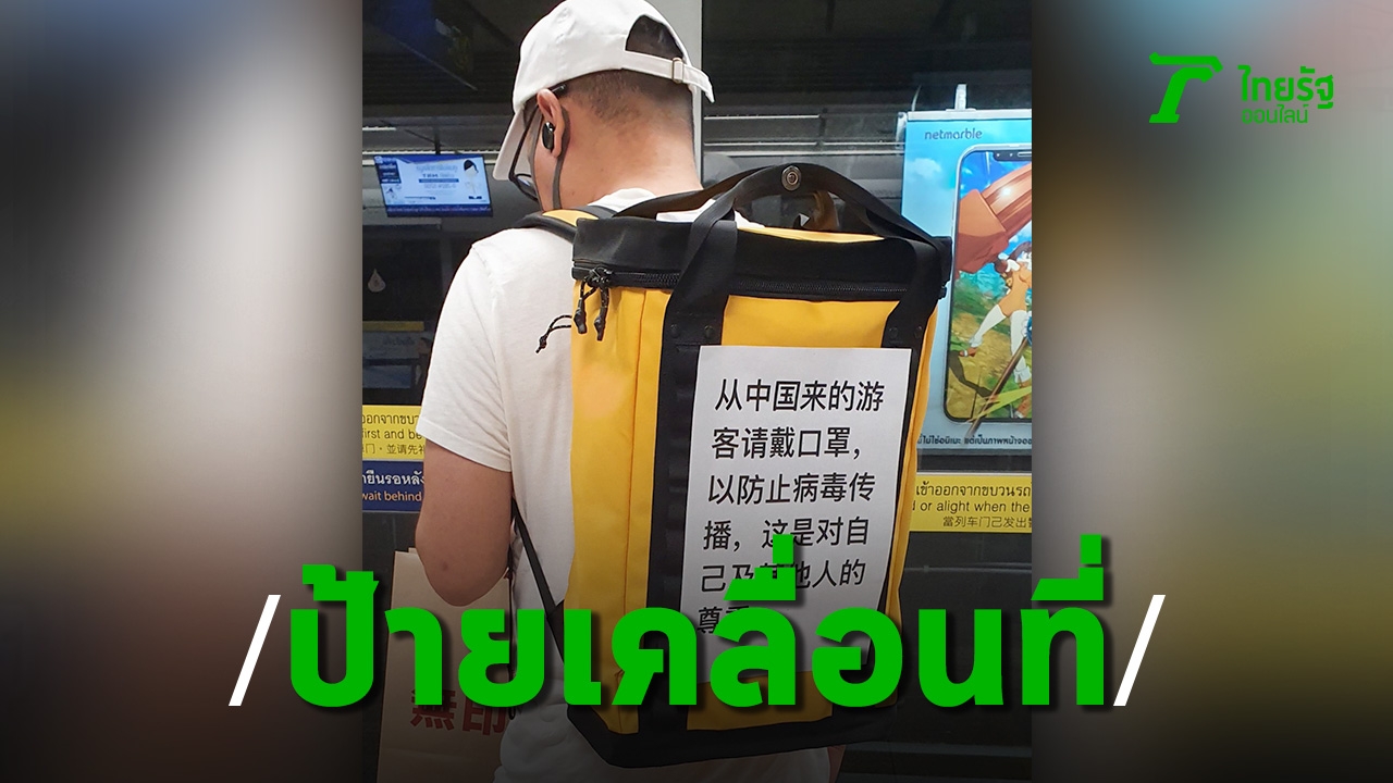หนุ่มไทยไอเดียดี เปลี่ยนกระเป๋าเป็นสื่อเคลื่อนที่ ทำป้ายเขียนภาษาจีนบอกนักท่องเที่ยวจีนโปรดสวมหน้ากาก ป้องกัน "ไวรัสโคโรน่า"