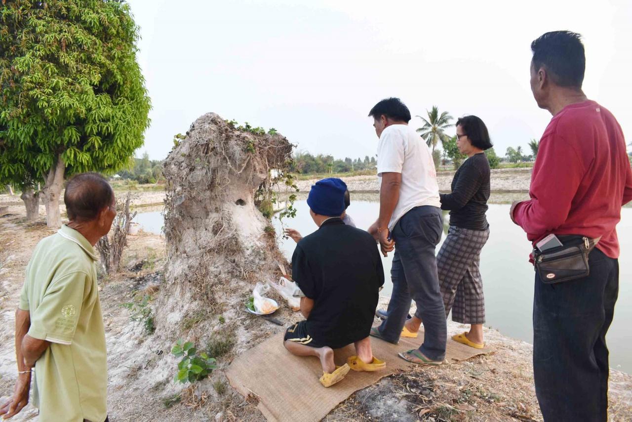 ชาวบ้านร่วมทำพิธีบวงสรวง "จอมปลวกปู่ราชสีห์" เพื่ออธิษฐานขอความเป็นสิริมงคล ไม่พลาดได้ "เลขเด็ด" ไปเสี่ยงโชค