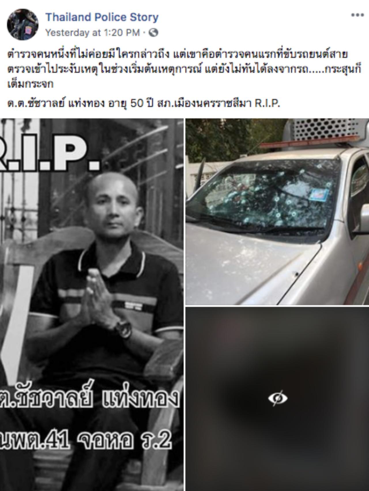 โซเชียลเชิดชู "ด.ต.ชัชวาลย์ แท่งทอง" ตำรวจผู้เสียสละ เสี่ยงชีวิตขับรถเข้าสกัดจับ "คนร้ายกราดยิงโคราช" ตั้งแต่ก่อเหตุช่วงแรกจนถูกยิงดับคารถ