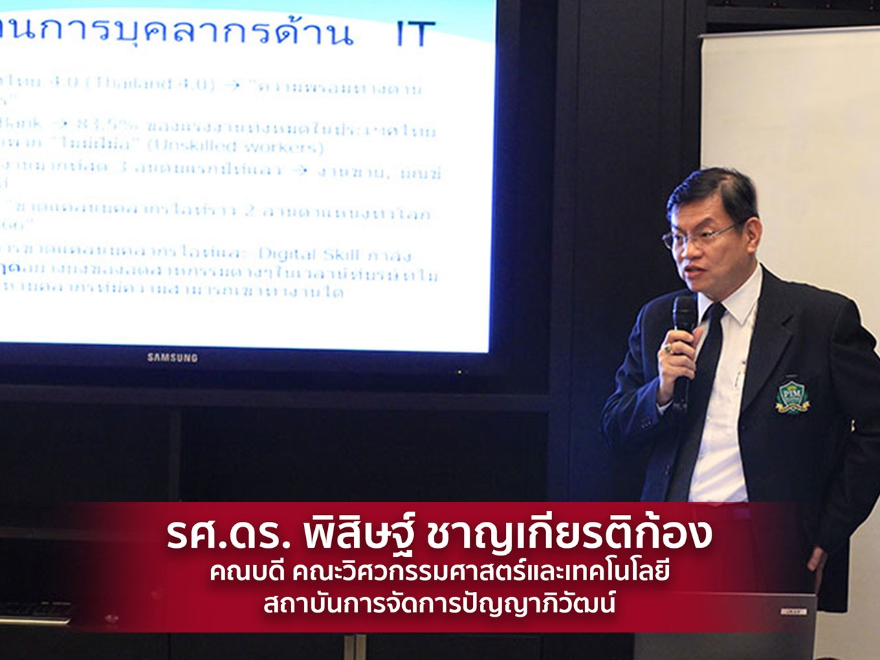 รองศาสตราจารย์ ดร. พิสิษฐ์ ชาญเกียรติก้อง คณบดี คณะวิศวกรรมศาสตร์และเทคโนโลยี สถาบันการจัดการปัญญาภิวัฒน์ (พีไอเอ็ม) กล่าวว่า “80% ของเทคโนโลยีใหม่ปี 2020 มีพื้นฐานมาจาก AI ทั้งหมด จึงปรับปรุงสาขาวิศวกรรมคอมพิวเตอร์และปัญญาประดิษฐ์ที่เดิมเข้มแข็งอยู่แล้ว ให้นักศึกษามีความเข้าใจในระดับที่ลึกขึ้นตั้งแต่ปี 1 เช่นวิชาคณิตศาสตร์ก็สอดแทรก AI เข้าไป ส่วนทางสาขาเทคโนโลยีดิจิทัลเพิ่มเทคโนโลยีใหม่ๆ เช่น AI, Blockchain, Cloud และ Big Data สอดรับกับเทรนด์ของโลกและนโยบายของรัฐบาลอย่างเต็มที่ โดยทางคณะวิชาได้มีการวางแผนการปรับหลักสูตรมาก่อนหน้านี้แล้ว 2-3 ปี ผนวกกับการเรียนรูปแบบ Work-based Education ที่ส่งนักศึกษาฝึกปฏิบัติงานตั้งแต่ปี 2 ถึงปี 4 ค่อยๆ สะสมข้อมูลว่าความรู้ที่จะต้องใช้มันเปลี่ยนไปแล้ว ประกอบกับได้รับความร่วมมือจากสถานประกอบการคอยอัปเดตข้อมูลความรู้ซึ่งกันและกันกับทางพีไอเอ็มอยู่เสมอๆ ไม่เพียงเท่านี้พีไอเอ็มได้ลงทุนเพิ่มเพื่อรองรับการทดลองของนักศึกษา ทั้งแอปพลิเคชันใหม่ๆ เพิ่มประสิทธิภาพให้กับห้องปฏิบัติการด้วย Hardware และ Software ที่ครอบคลุมทั้งปัจจุบันและในอนาคต ทั้ง 2 สาขาวิชาตอบโจทย์ความต้องการของภาคอุตสาหกรรมและภาคธุรกิจอย่างแท้จริง ทั้ง A B C D (AI, Blockchain, Cloud, (Big) Data) เมื่อก่อนจะแทรกอยู่ในวิชาต่างๆ แต่ตอนนี้ดึงขึ้นมาให้ลึก ให้ชัดเจนขึ้น เพิ่มความสดใหม่ของวิชา ให้เข้าใจและตระหนักถึงความจำเป็นของเทคโนโลยีใหม่เหล่านี้ได้”