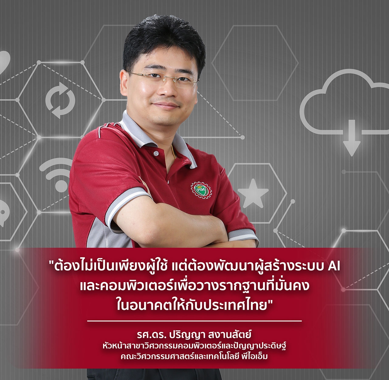 รองศาสตราจารย์ ดร. ปริญญา สงวนสัตย์ หัวหน้าสาขาวิชาวิศวกรรมคอมพิวเตอร์และปัญญาประดิษฐ์ คณะวิศวกรรมศาสตร์และเทคโนโลยี พีไอเอ็ม, นักเขียนหนังสือด้านปัญญาประดิษฐ์ฉบับภาษาไทยเล่มแรกของไทยที่เคยขึ้นอันดับหนึ่งขายดีที่สุด กล่าวว่า “สมัยนี้ การเรียนแค่เลข เคมี ฟิสิกส์ ไม่เพียงพอ เราต้องติดอาวุธ เพิ่มความเชี่ยวชาญทางคอมพิวเตอร์และปัญญาประดิษฐ์ การเขียนโปรแกรมรวบรวมข้อมูลจากแหล่งต่างๆ จนสามารถนำมาใช้วิเคราะห์และสามารถมองเห็นปัญหาที่มีอยู่จริงทั้งในและนอกองค์กรได้ รวมถึงเพิ่มวิชาสำคัญที่จำเป็น เช่น Mathematics for Artificial Intelligence, Programming, Infrastructure, IoT, Machine Learning, Computer Vision, Natural Language Processing, Object Oriented Cross-Platform Programming และเสริมจุดเด่นในวิชาที่ทางพีไอเอ็มเปิดสอนในหลักสูตรคือ “AI Hardware Accelerator” เพื่อสร้างบัณฑิตให้เป็น Computer Engineering ที่เก่ง AI และมีความเชี่ยวชาญในสาขานี้โดยเฉพาะ” ที่ผ่านมามีผลงานของนักศึกษาที่น่าสนใจ ได้รับการจดลิขสิทธิ์โปรแกรมระบบตัดจ่ายไส้กรอกอัตโนมัติเป็น AI ที่ใช้ Computer Vision และ IoT ร่วมกัน ในการระบุว่าไส้กรอกชิ้นไหนสุกระดับใด เพื่อลดความสูญเสียจากไส้กรอกที่สุกเกินไป นอกจากเรียนทฤษฎีในห้องเรียนแล้ว ยังส่งนักศึกษาฝึกปฏิบัติงานบริษัท Ryowa และบริษัท JMACS ด้านระบบอัตโนมัติ ที่เมืองคิตะคิวชู ประเทศญี่ปุ่น เพื่อให้โอกาสนักศึกษาต่อยอดการเรียนรู้เพิ่มพูนทักษะ และเปิดประสบการณ์ การลงมือปฏิบัติงานจริงในต่างประเทศ