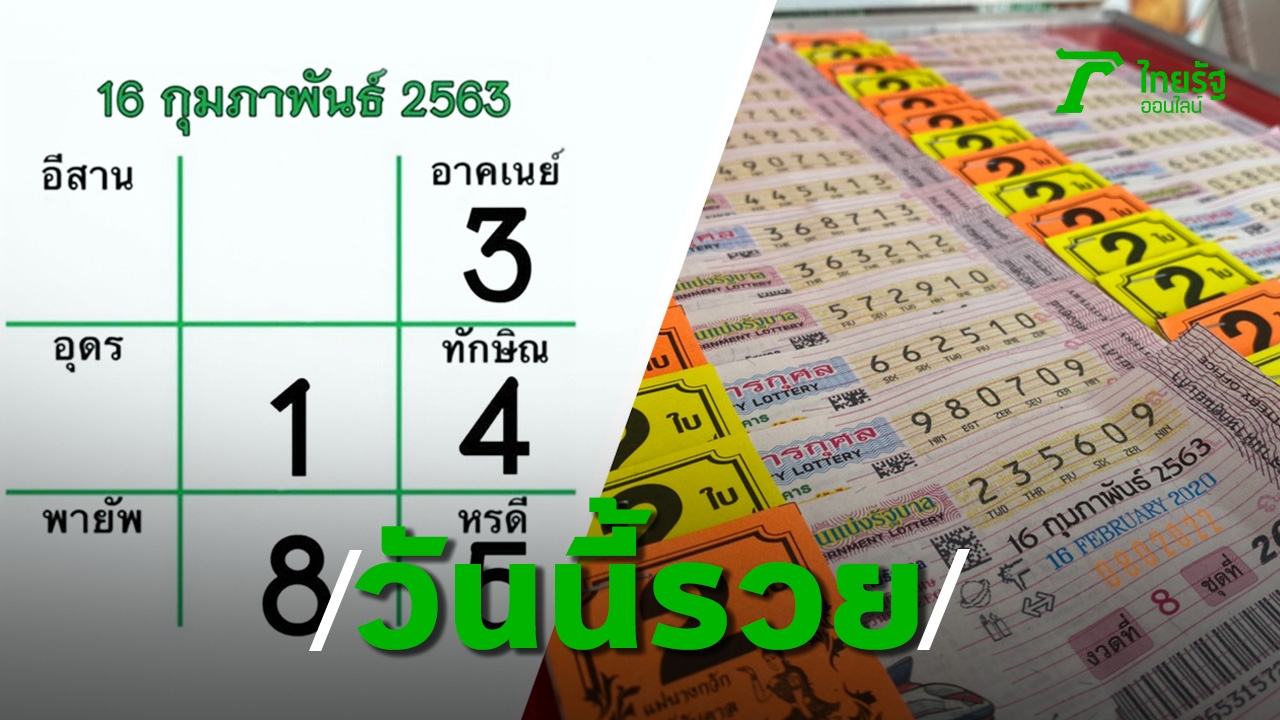 โค้งสุดท้าย ข่าวหวยไทยรัฐ "เลขเด็ด" เลขดัง ก่อนการออกรางวัล "สลากกินแบ่งรัฐบาล" งวดวันที่ 16 ก.พ. 63 ใครอยากลุ้นเป็นเศรษฐีใหม่ อย่าลืมรีบซื้อลอตเตอรี่ก่อนจะออกรางวัล