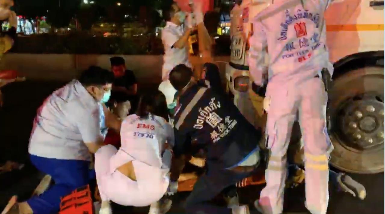 เกิดเหตุชายชาวจีน ปีนนั่งห้อยขาบนสะพานลอยหน้า ม.หอการค้า พร้อมตะโกนเสียงดังโวยวาย ตำรวจเร่งเข้าเจรจา แต่ไม่สำเร็จ กระโดดลงมาที่พื้นเจ็บเล็กน้อย แต่ส่งผลให้วิภาวดีฯ รถติดหนัก