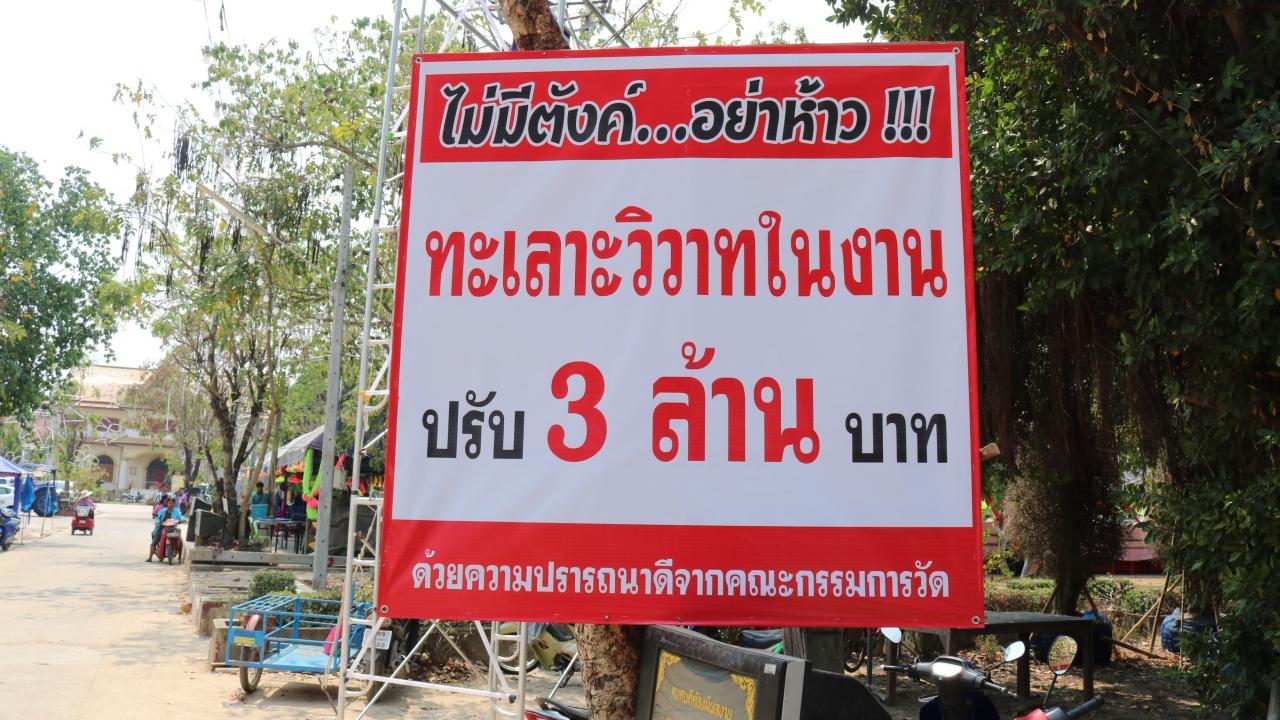 วัดอัมพาพนาราม ขึ้นป้ายเตือน "ตีกันในงานปรับ 3 ล้าน" หวังปราบคนชอบยกพวกตีกันในงานประจำปี "หลวงปู่เพ็ง" ย้ำ ไม่มีตังค์ อย่าห้าว