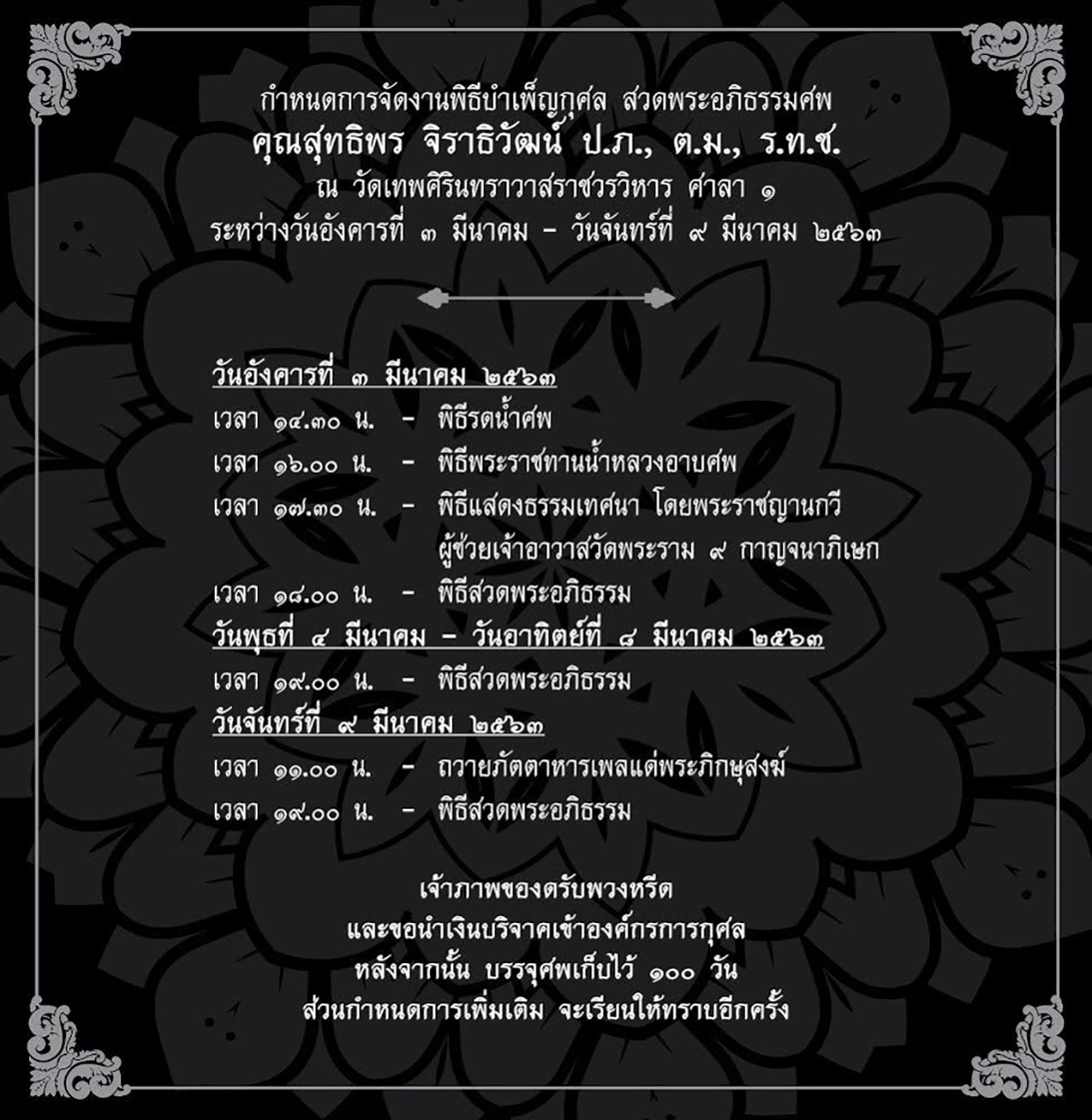 - จัดตั้ง “มูลนิธิสุทธิจิตต์” ที่วัดศรีเกิด อ.เมือง จ.ลำปาง