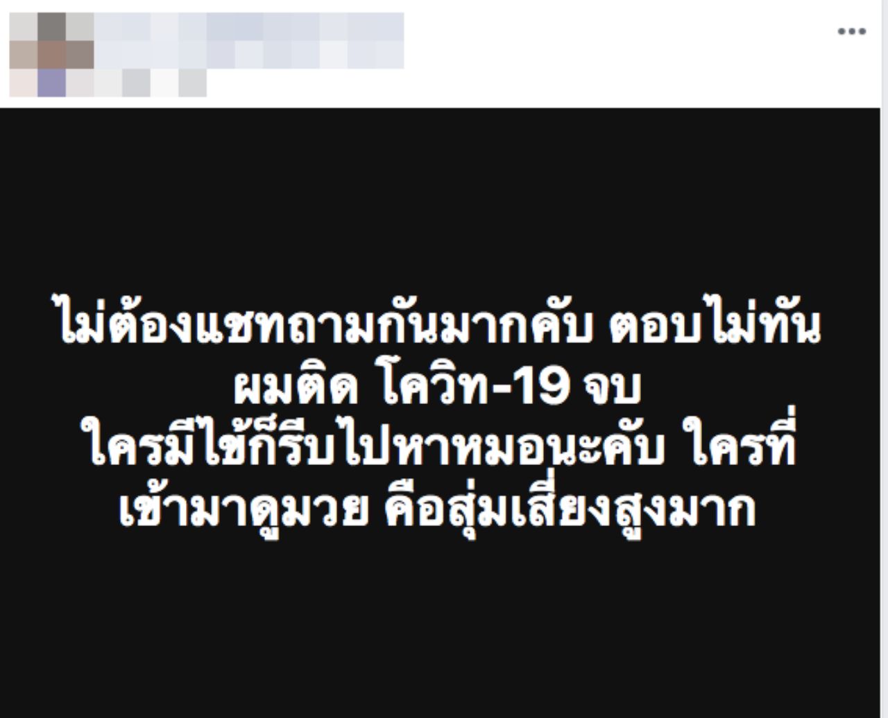 หนุ่มเซียนมวย โพสต์เฟซบุ๊กติดโควิด-19 รักษาตัวอยู่ในโรงพยาบาล เพื่อนแชตตอบป่วยเช่นเดียวกัน เตือนสนามมวยจุดเสี่ยง