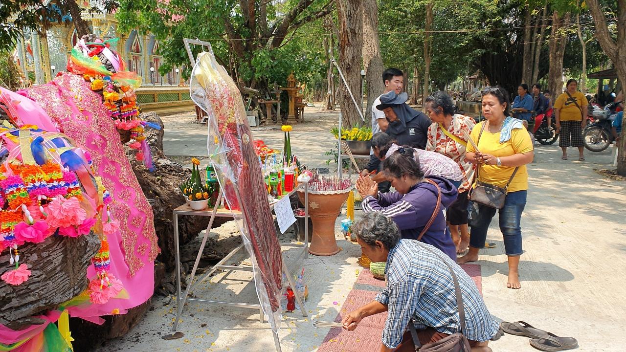 บรรดานักเสี่ยงโชค มาแก้บน "เจ้าแม่จันทร์สุดา" ต้นตะเคียนทอง หลังให้ "เลขเด็ด" ตรงๆ ทำคอหวยยิ้มกว้าง