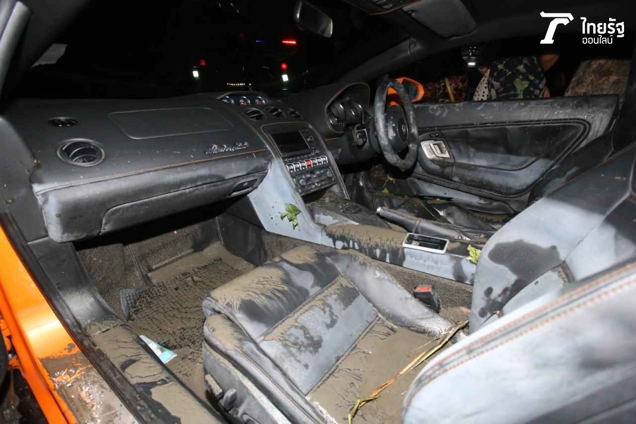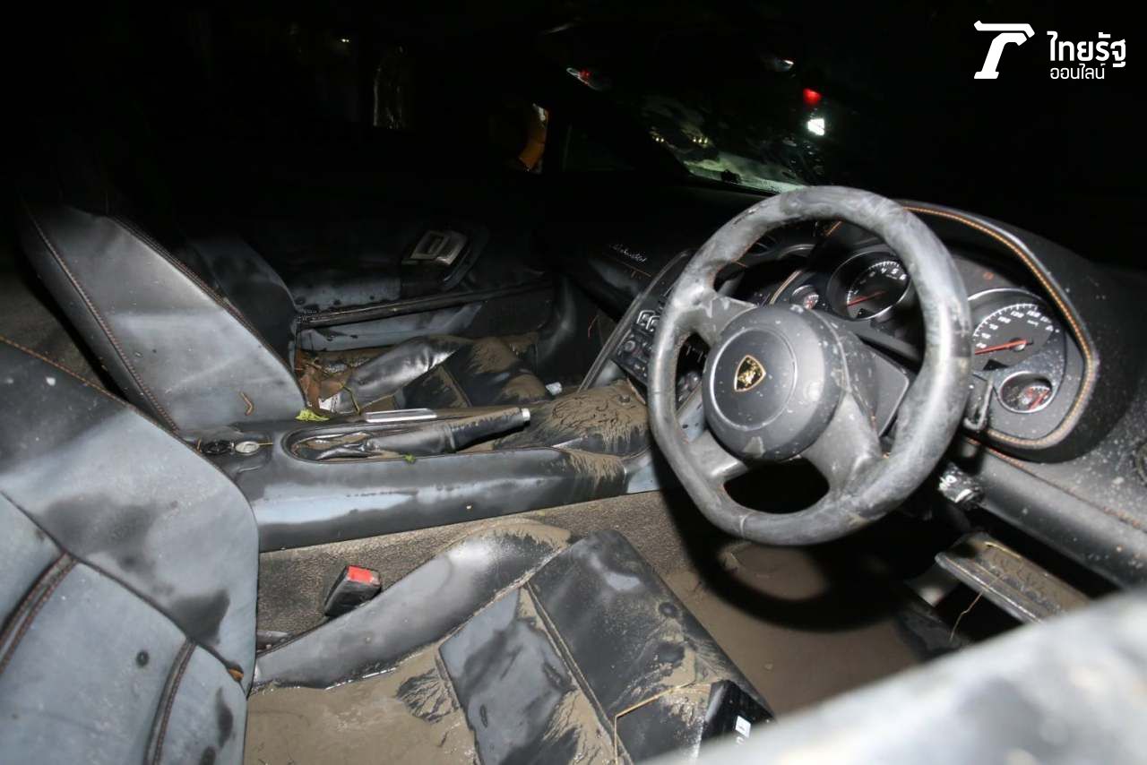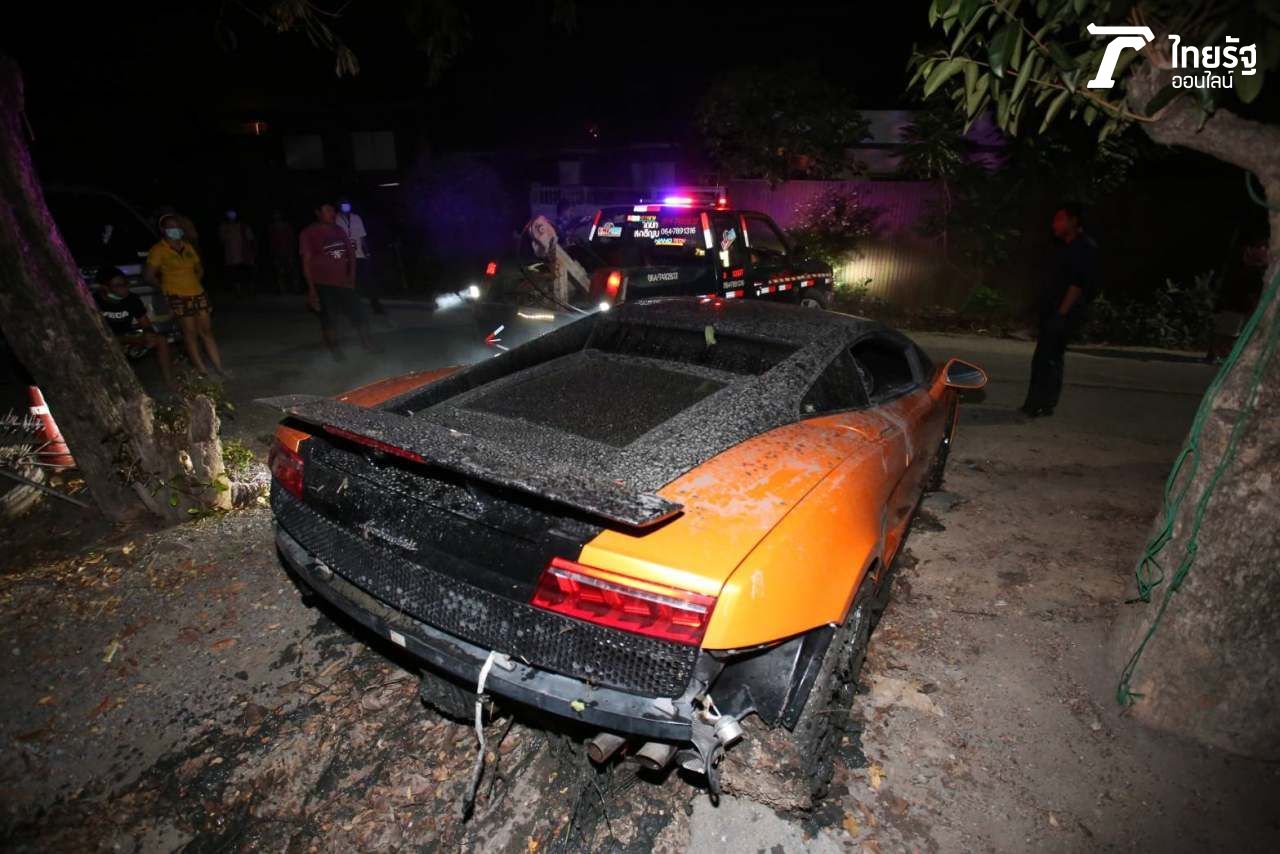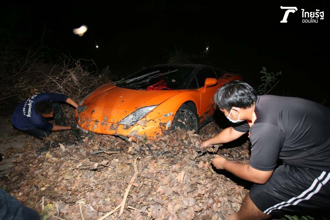 ในที่เกิดเหตุ พบรถหรูยี่ห้อลัมโบร์กินี ตกอยู่ภายในคลองจนเกือบมิดคัน ส่วนผู้ได้รับบาดเจ็บ ทราบว่าออกมาจากรถแล้ว และได้นั่งวินจักรยานยนต์รับจ้างไปที่โรงพยาบาลก่อนหน้านี้แล้ว