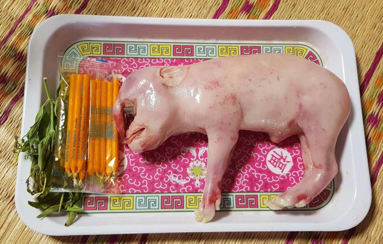เมื่อนำกลับมาถึงบ้านได้ประมาณ 3 ชม. ลูกหมูก็ตาย จึงได้ทำความสะอาด และดองน้ำเกลือในขวดโหลเอาไว้ เมื่อดองได้ที่แล้ว จะนำออกมาตากแห้ง และนำไปวางบนหิ้งบูชา เป็นสิ่งสิริมงคลกับครอบครัว ในขณะที่เพื่อนบ้านพอทราบข่าวก็พากันมาดู