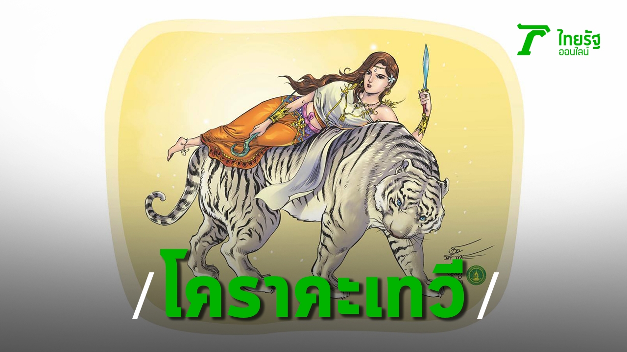 นางสงกรานต์ ปี 2563 "โคราคะเทวี" ทรงพาหุรัดทัดดอกปีบ พระหัตถ์ขวาทรงธนูหรือไม้เท้า พระหัตถ์ซ้ายทรงพระขรรค์ เสด็จไสยาสน์ลืมเนตรเหนือหลังพยัคฆะ มหาชนร้อนใจด้วยอาหารแลน้ำน้อย