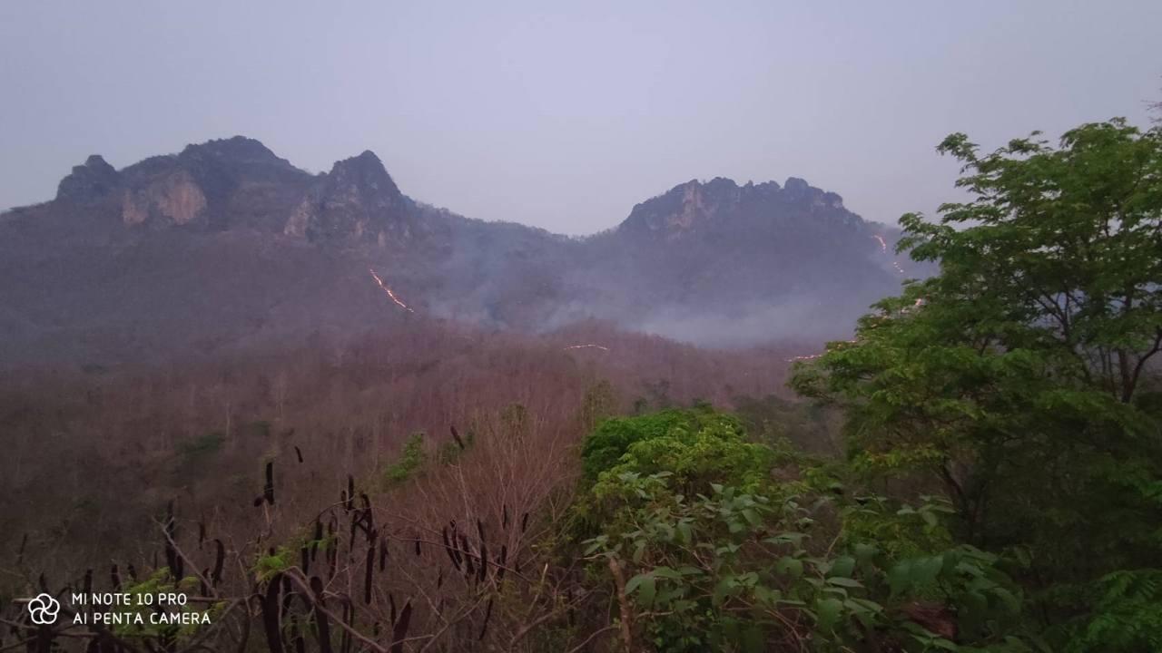 ไม่ไหวแล้วคุณโยม ไฟเผาป่ารอบวัดเจดีย์ลอยฟ้าที่ลำปาง พระ เณร ช่วยกันดับแต่เอาไม่อยู่แล้ว เพราะไหม้มา 2 วันติดแล้ว