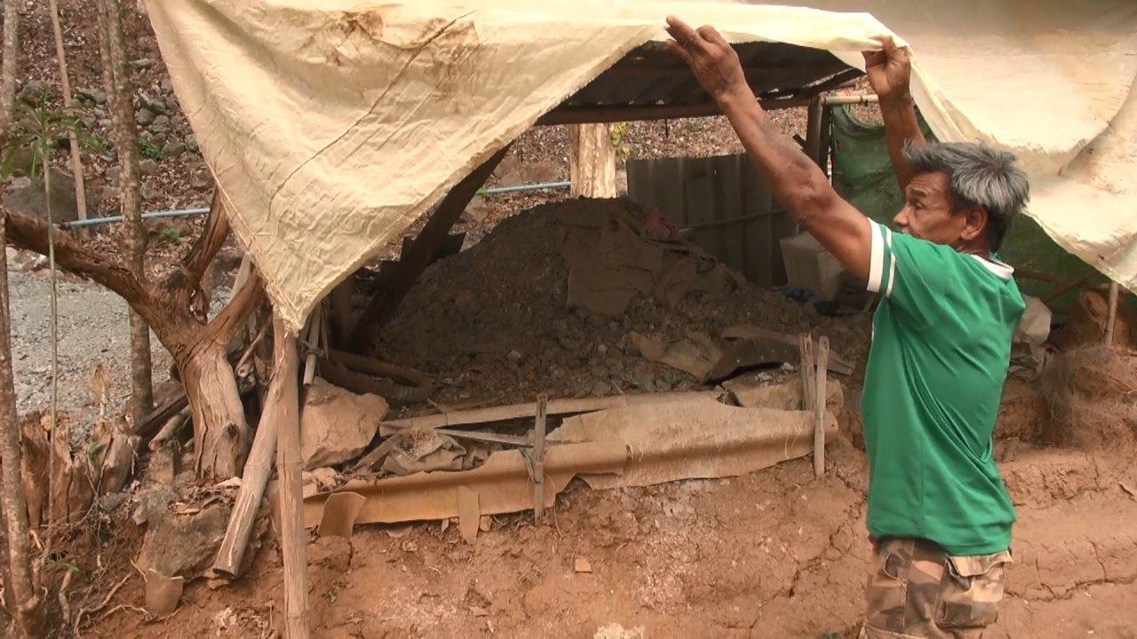 ทั้งนี้ ภายในโพรงนั้น มีการค้นพบหินปนดิน ที่มีสีเทาผิดจากดินทั่วไป จึงได้มีการขนขึ้นมาจากในโพรงนำมาไว้บนพื้นดินด้านบนเป็นจำนวนหลายสิบตัน เมื่อขุดมาได้ประมาณ 15 ปี ได้เกิดมีฝนตกขนาดใหญ่จนทำให้เกิดน้ำไหลหลากดินถล่มลง ไปปิดโพรงดังกล่าวทั้งหมด ทำให้พวกตนต้องวางแผนงานกันใหม่ และนำไปสู่การจ้างรถแบ็กโฮเข้ามาทำการช่วยขุดเจาะ ตั้งแต่ช่วงต้นเดือนเมษายน กระทั่งมาถูกเจ้าหน้าที่เข้าทำการตรวจค้นจับกุมดังกล่าว
