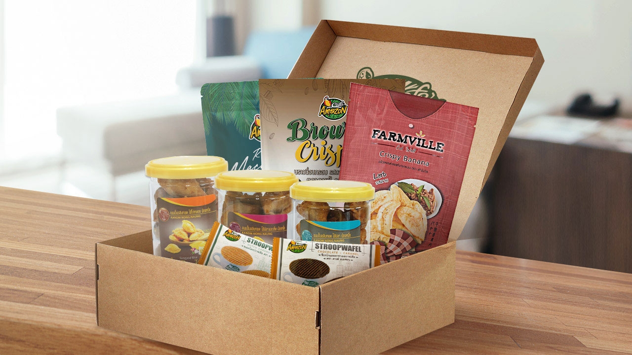 คาเฟ่ อเมซอน มองเห็นวิกฤติที่กระทบไปสู่ผู้ประกอบการรายย่อยเป็นอย่างมากนี้ จึงตั้งใจสร้างโอกาสในการจัดจำหน่ายให้กลุ่ม SMEs และกลุ่มผู้ผลิตสินค้า OTOP ผ่านช่องทางออนไลน์ ด้วยการเปิดร้านค้า คาเฟ่ อเมซอน ผ่านช่องทาง Lazada แพลตฟอร์มอีคอมเมิร์ซ หนึ่งในตลาดที่มีศักยภาพสูงมาก เพื่อรวบรวมผลิตภัณฑ์ขนมขบเคี้ยวและสินค้าแปรรูปอบแห้งที่ดูสดใหม่ สะอาด น่าอร่อย จากกลุ่มชาวบ้านวิสาหกิจชุมชนและกลุ่มเกษตรกรที่นำวัตถุดิบท้องถิ่นมาผลิตอย่างใส่ใจมาให้นักช็อปออนไลน์ได้เลือกซื้อ และเพื่อให้กลุ่ม SMEs กลุ่มที่ขายสินค้า OTOP นี้มีกำลังใจและขับเคลื่อนธุรกิจต่อไปได้ด้วยรอยยิ้มอีกครั้ง โดยนำร่องด้วย 9 สินค้าทานเล่น อย่าง ขนมขายดีอย่างปั้นขลิบทอดไส้ไก่หยอง ปั้นขลิบทอดไส้ปลา ปั้นขลิบทอดไส้ปลาและเห็ดที่ผัดปรุงรสจนกลมกล่อม สอดไส้เข้าไปในแผ่นแป้ง และทอดจนเหลืองกรอบเหมาะในการทานคู่กับกาแฟในตอนเช้า หรือกล้วยหอมทอดรสซาวครีมและกล้วยหอมทอดรสลาบ ที่นำมาอบกรอบจนหอมหวาน ปรุงด้วยรสชาติออกมาอร่อยไม่เหมือนใคร รวมถึง ช็อกโกแลตคาราเมลวาฟเฟิล คาราเมลวาฟเฟิล แมคคาเดเมียอบเกลือ และบราวนี่อบกรอบรสดาร์คช็อกโกแลต
