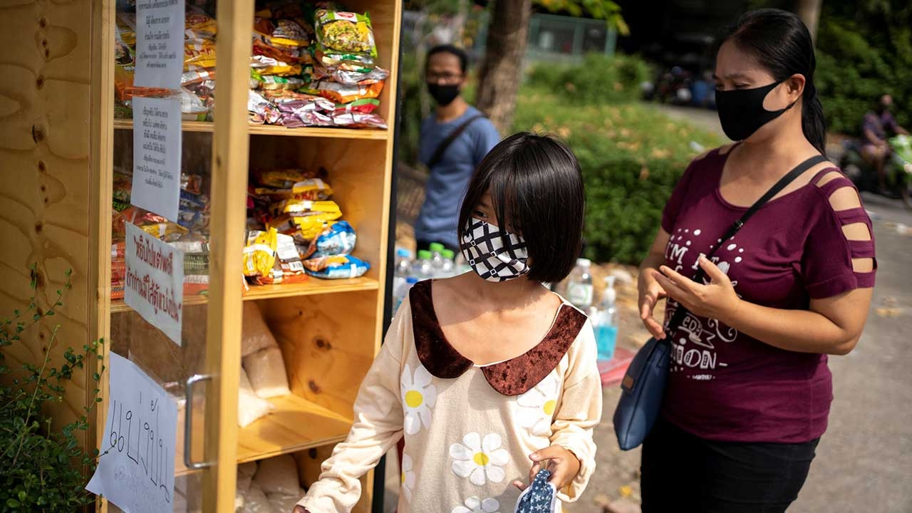 นั่นก็คือ เรื่องราวของ “ตู้ปันสุข” “ตู้ปันใจ” หรือ “ตู้เติมใจให้กัน” ฯลฯ สำหรับการแบ่งปันน้ำใจจากคนไทยที่ยังพอมีพอกินไปสู่พี่น้องอีกกลุ่มหนึ่งที่กำลังตกอยู่ในภาวะไม่มีกินอยู่ในขณะนี้
