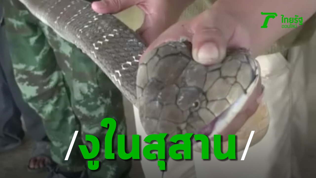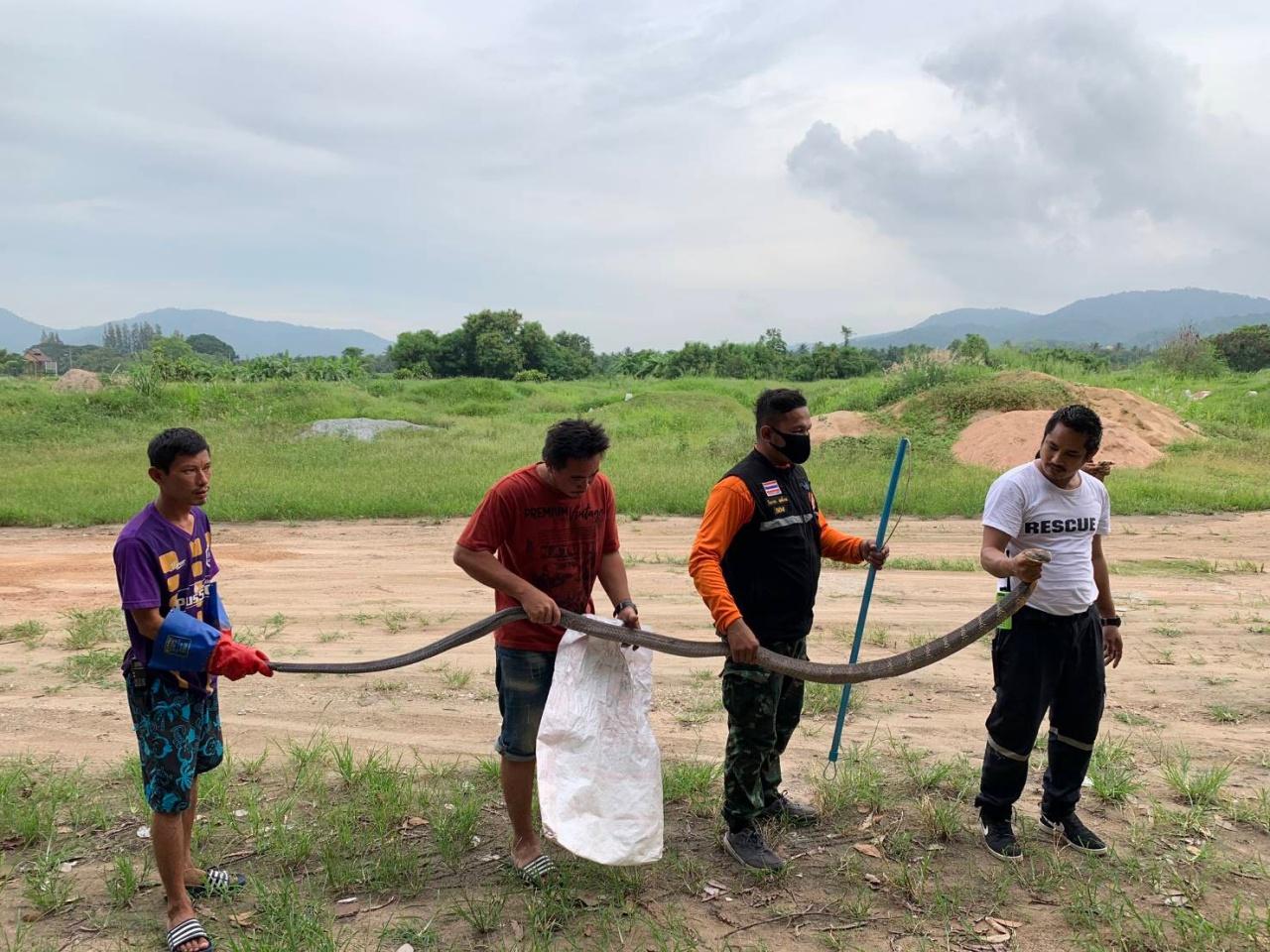 ชาวบ้านแทบช็อก "งูจงอางยักษ์" เลื้อยผ่านเข้าไปอยู่ในสุสานมังกรทอง จ.ชลบุรี รีบเรียกกู้ภัยช่วยกันจับ คาดออกมาหาอาหารช่วงหลังฝนตก