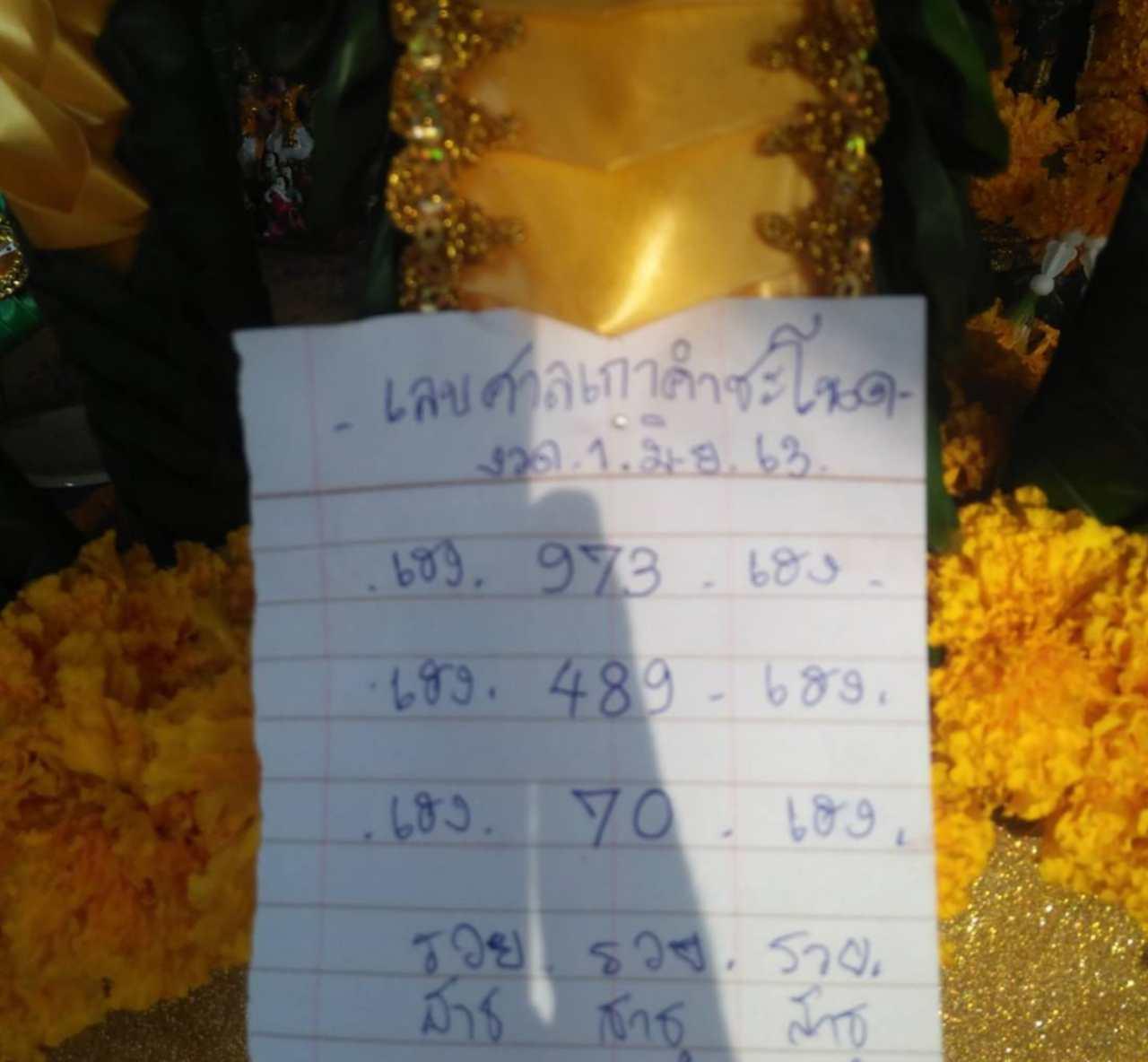 หลังจากทำพิธีขอโชคลาภจากพ่อปู่แม่ย่าแล้ว คนที่โชคดีบอกว่างวดนี้อย่าลืมเสี่ยงโชคดู เลขเด็ด 3 ตัวคือ 973, 489 สำหรับเลขท้าย 2 ตัว คือ 70,07 เผื่อว่าพ่อปู่แม่ย่ามาให้โชค เป็นความเชื่อส่วนบุคคลห้ามกันไม่ได้