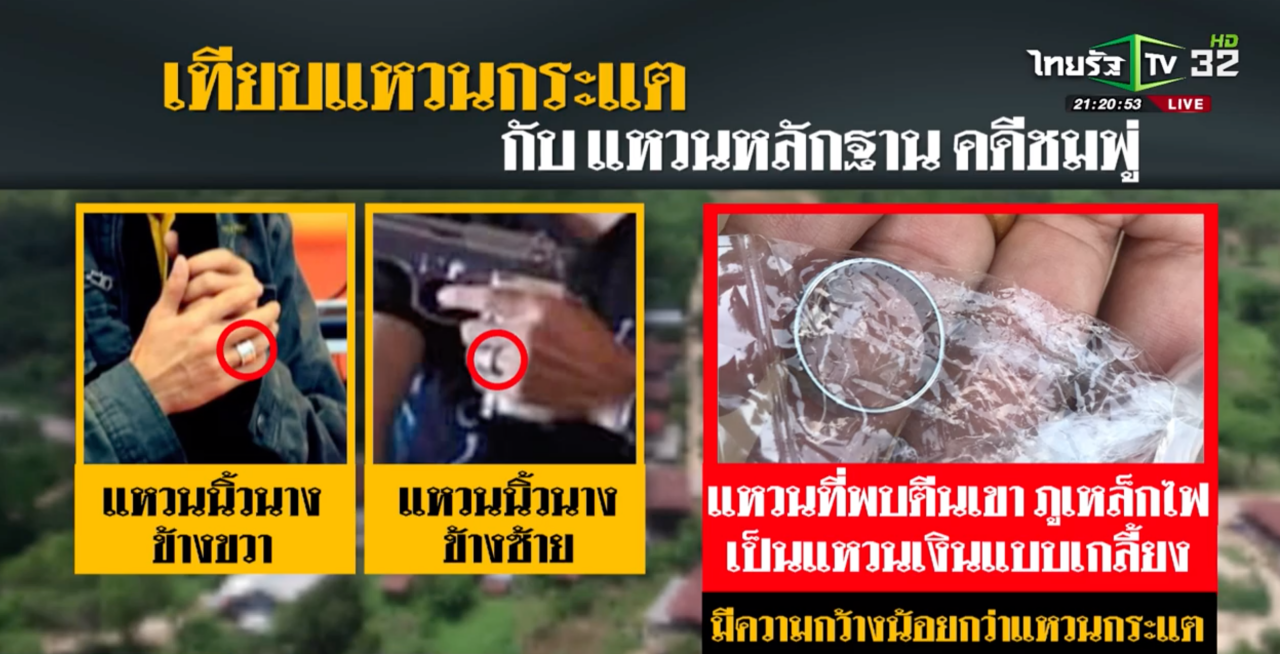 ส่วนที่ชาวโซเชียล ตั้งข้อสังเกตเกี่ยวกับแหวนวงหนึ่งที่เก็บได้ใกล้กับบริเวณที่น้องชมพู่เสียชีวิต ลักษณะเป็นแหวนเงินเกลี้ยง และตั้งข้อสังเกตว่า จะเป็นวงเดียวกับของน้าแตหรือไม่ ซึ่งในช่วงที่น้องชมพู่เสียชีวิต ไม่พบว่า น้าแต ใส่แหวนวงนี้แล้ว โดยน้าแต ชี้แจงว่า แหวนวงนั้น รุ่นพี่ซื้อแหวนมาฝากได้ 7-8 ปีแล้ว ใส่ได้ทั้งนิ้วนางและนิ้วก้อย แต่ตนก็ไม่ได้ใส่มา 6 ปีกว่าแล้ว เพราะแพ้ อีกทั้งทำฟาร์มหนูจึงไม่ได้ใส่ ช่วงก่อนที่น้องหายไป ก็ไม่ได้ใส่แล้ว ไม่แน่ใจว่าเก็บไว้ไหน อาจจะเป็นที่บ้าน ซึ่งหากว่าหาเจอจะนำมาให้ดู