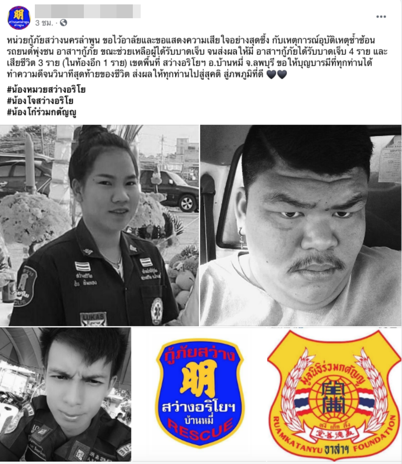 เพื่อนแห่อาลัย อาสาสมัครกู้ภัยที่บ้านหมี่ ลพบุรี โดนปิกอัพฝ่าความมืด ชนดับคาที่ 4 ศพ ขณะกำลังช่วยคนเจ็บ สุดเศร้ากู้ภัยสาวตั้งครรภ์ 4 เดือน ดับพร้อมลูกในท้อง