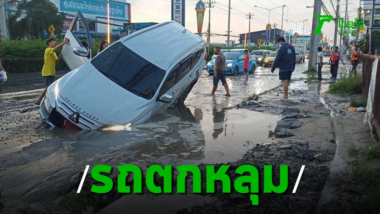 เกิดอุบัติเหตุ รถยนต์ป้ายแดง ตกหลุมถนนเส้น ปทุม-สามโคก คาดท่อประปาแตก ทำให้เกิดการทรุดตัวของชั้นดิน เบื้องต้นเจ้าหน้าที่ตำรวจกำลังเร่งตรวจสอบสาเหตุที่แท้จริง