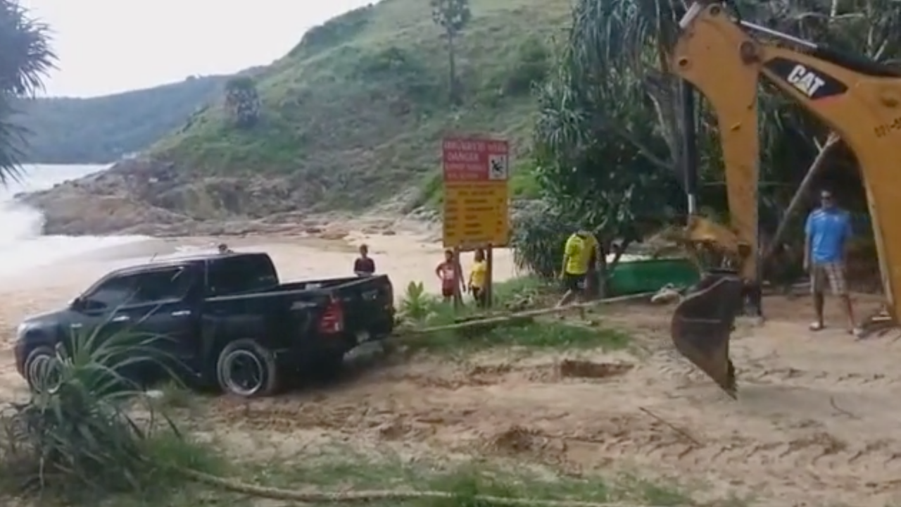 จากนั้น นายอรุณ โสฬส นายกเทศมนตรีตำบลราไวย์ ได้นำรถตักหน้า-ขุดหลัง ลงไปที่บริเวณชายหาดแล้วดึงรถคันดังกล่าวกลับ ใช้เวลา 30 นาที ก็สามารถที่จะดึงรถคันดังกล่าวกลับขึ้นมาบริเวณชายฝั่งได้ จากการตรวจสอบเป็นรถยนต์กระบะยี่ห้อ Toyota 2 ตอน สีดำ หมายเลขทะเบียน ขค 5667 ภูเก็ต มีนายธนากร เอี่ยมประเสริฐ อาชีพช่างรับเหมาทำเฟอร์นิเจอร์ เป็นเจ้าของ