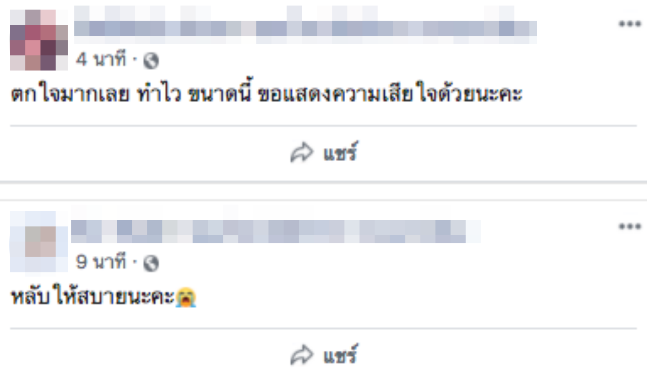 ขณะที่เฟซบุ๊กของหนุ่มนักแสดงลิเก ผู้เสียชีวิต ได้มีการโพสต์ถึงรายการพิเศษครั้งแรกหลังโควิด-19 ซึ่งจะมีการแสดงในวันที่ 9 สิงหาคม 2563 นอกจากนี้ยังพบว่า ได้มีเพื่อนและแฟนคลับเข้ามาแสดงความอาลัยต่อการจากไปในครั้งนี้จำนวนมาก.