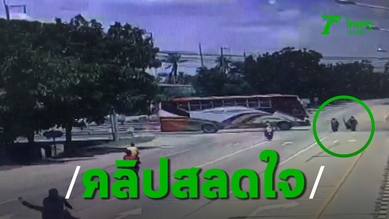 เปิดคลิปสลดใจ จักรยานยนต์ชนลวดสลิงของรถบรรทุกลากรถบัส กลางถนน เสียชีวิต 2 ราย บาดเจ็บ 1 ราย หน้าโรงพยาบาลศรีประจันต์ จ.สุพรรณบุรี