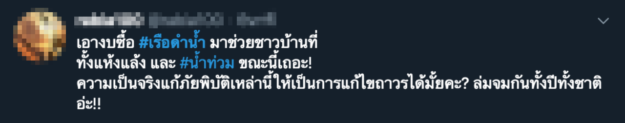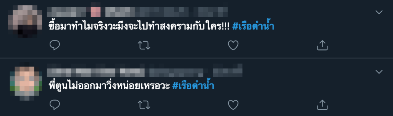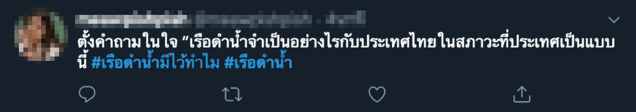 โลกโซเชียล แห่แสดงความคิดเห็น หลัง ทร. ซื้อเรือดำน้ำ 2 ลำ กว่า 2 หมื่นล้าน พร้อมติดแฮชแท็ก "เรือดำน้ำ" หลายคนตั้งคำถาม เอามาใช้อะไร ในสภาพเศรษฐกิจของประเทศเป็นเช่นนี้ หรือช่วยน้ำท่วมตอนนี้ได้ไหม