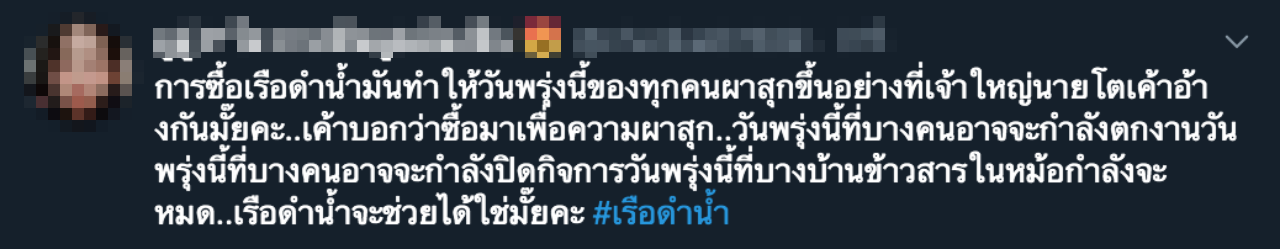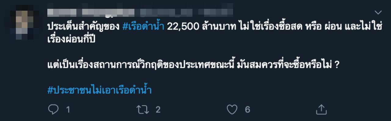 ซึ่งหลังจากที่กองทัพเรือแถลงข่าว ในโลกโซเชียล มีการออกมาแสดงความคิดเห็นเป็นจำนวนมาก พร้อมติดแฮชแท็ก #เรือดำน้ำ และ #ประชาชนไม่เอาเรือดำน้ำ จนพุ่งติดเทรนด์ทวิตเตอร์ ซึ่งส่วนใหญ่ก็ยังตั้งคำถามถึงความจำเป็นในการซื้อเรือดำน้ำ โดยหลายคนมองว่า แม้จะยังไม่รู้ว่า จะมีสงครามเกิดขึ้นเมื่อไหร่ แต่ ณ วันนี้ประเทศกำลังเดือดร้อนจากน้ำท่วม โควิด-19 ฯลฯ ซึ่งทำให้ประชาชนจำนวนมากไม่มีรายได้ ควรจะนำงบประมาณมาพัฒนาความเป็นอยู่ของคนในประเทศดีกว่าหรือไม่.