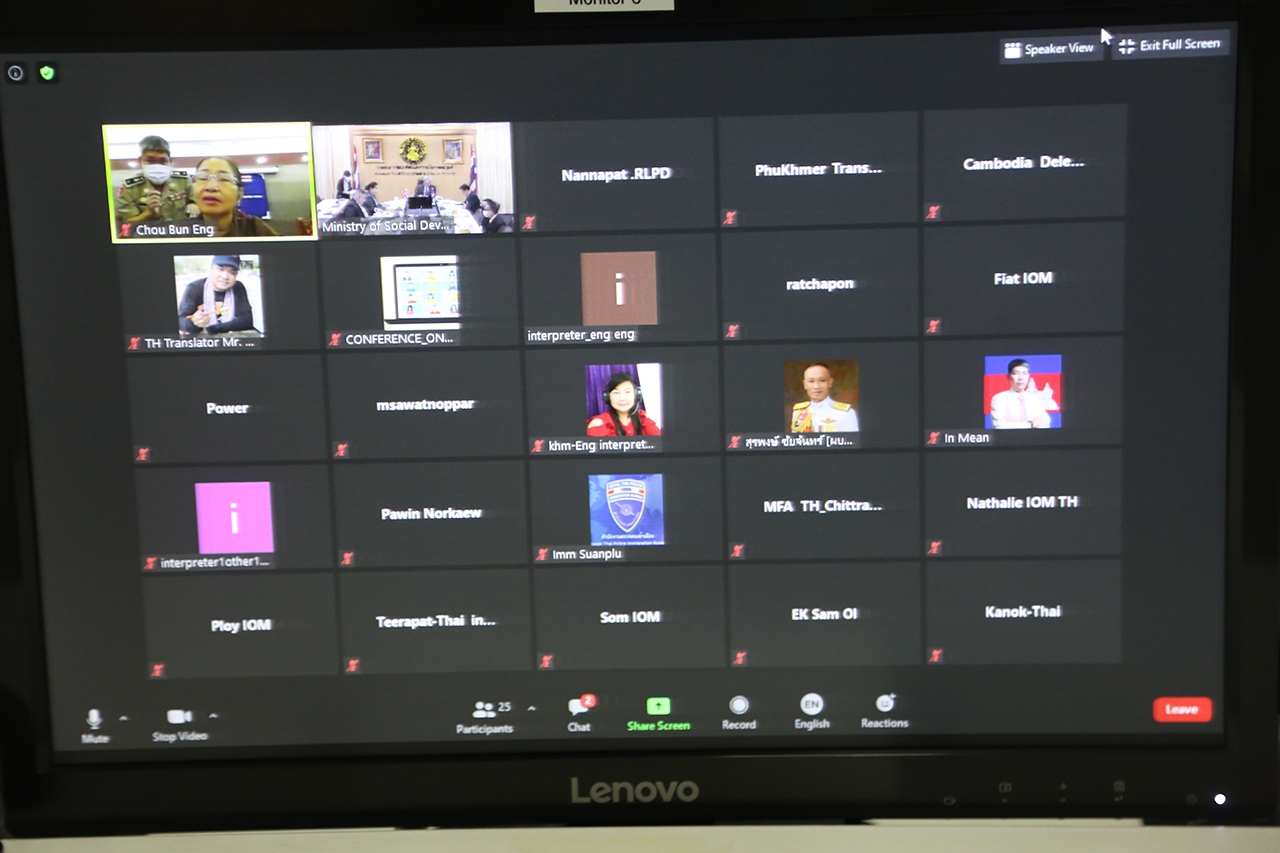 นายอนุกูล ปีดแก้ว รองปลัดกระทรวงการพัฒนาสังคมและความมั่นคงของมนุษย์ เป็นประธานฝ่ายไทย และ H.E. Chou Bun Eng Secretary of State รองประธานคณะกรรมการต่อต้านการค้ามนุษย์แห่งชาติ ราชอาณาจักรกัมพูชา เป็นหัวหน้าคณะฝ่ายกัมพูชา ในการประชุมทวิภาคีไทย-กัมพูชา เพื่อพิจารณา (ร่าง) สุดท้ายของขั้นตอนการปฏิบัติงานที่เป็นมาตรฐานในการช่วยเหลือผู้เสียหายจากการค้ามนุษย์ ในกระบวนการยุติธรรมทางอาญา ระหว่างไทย-กัมพูชา ผ่านระบบการประชุมทางไกล (Video Conference) ณ ห้องประชุม ชั้น 8 กระทรวงการพัฒนาสังคมและความมั่นคงของมนุษย์ สะพานขาว ถนนกรุงเกษม กรุงเทพฯ