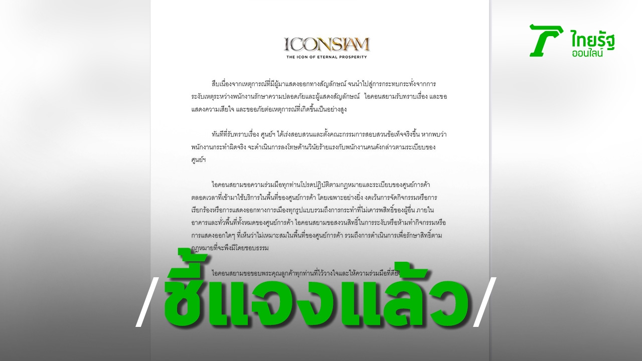ไอคอนสยาม ชี้แจงกรณีนักศึกษาสาวถือป้ายเชิงสัญลักษณ์ พร้อมตั้งคณะกรรมการสอบสวน รปภ.